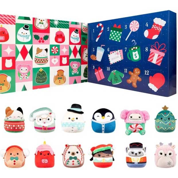 Adventní kalendář Squishmallows je perfektní způsob, jak si užít vánoční období s těmito roztomilými plyšáky. Kalendář Squishmallows obsahuje 12 malých plyšových hraček, každou ukrytou za jedním z 12 okének. Výška plyšáků je cca 6 cm. Obsahuje oblíbené vánoční postavičky jako Santa Claus, sněhulák, sob a mnoho dalších s vánočním motivem.