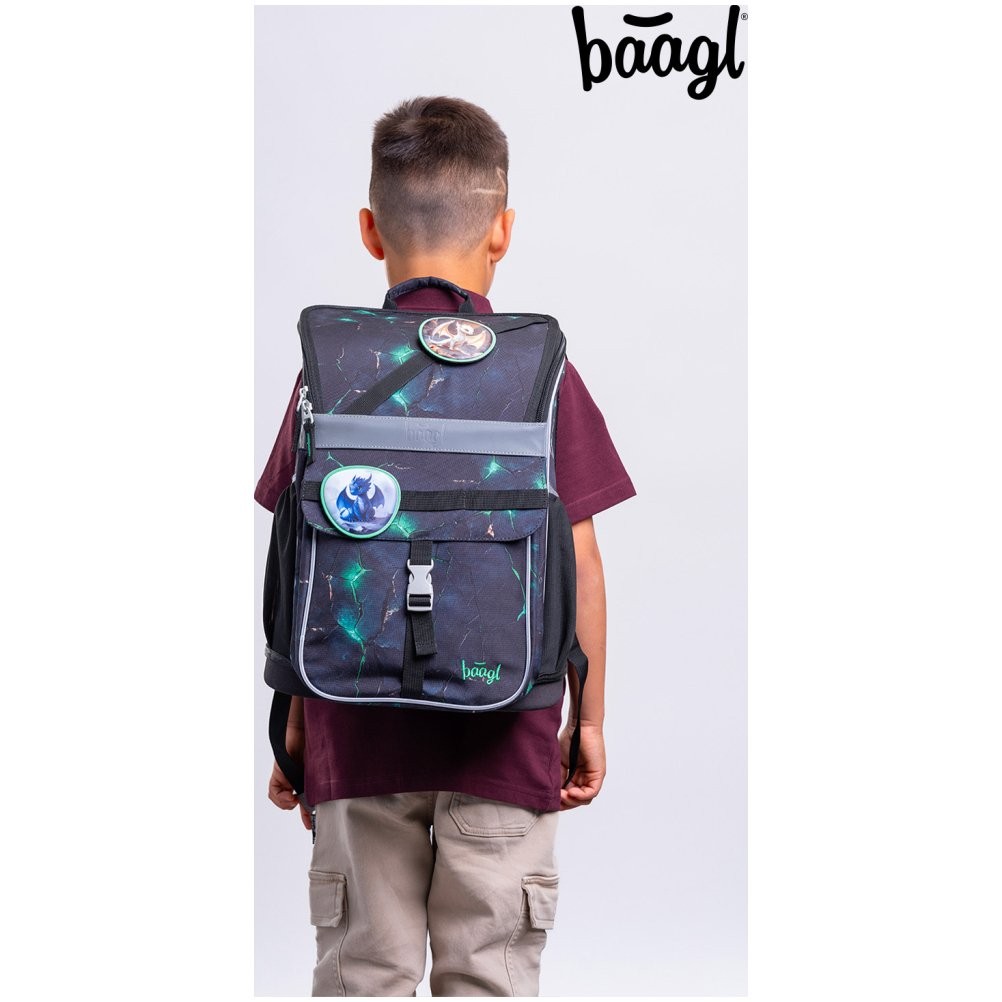 Aktovka pro prvňáčky Baagl Zippy v třídílném setu s motivem draků: