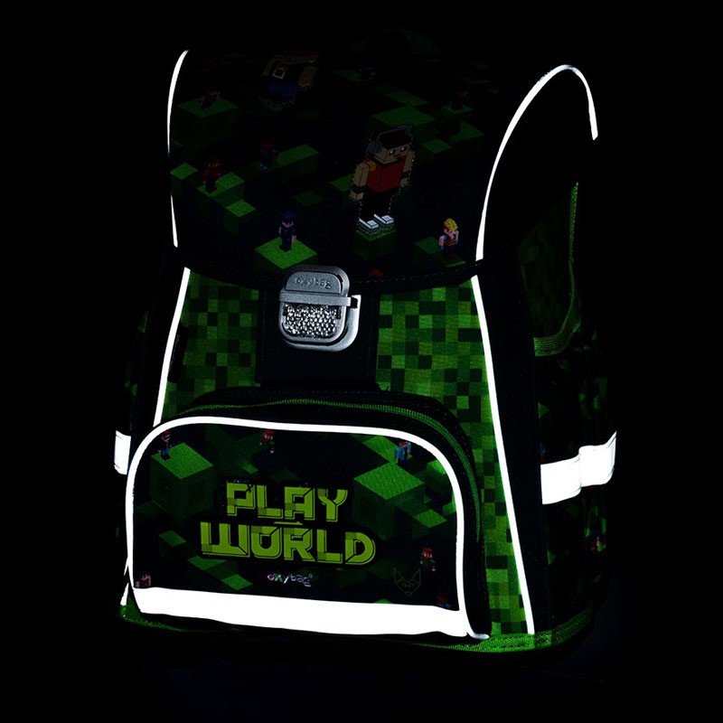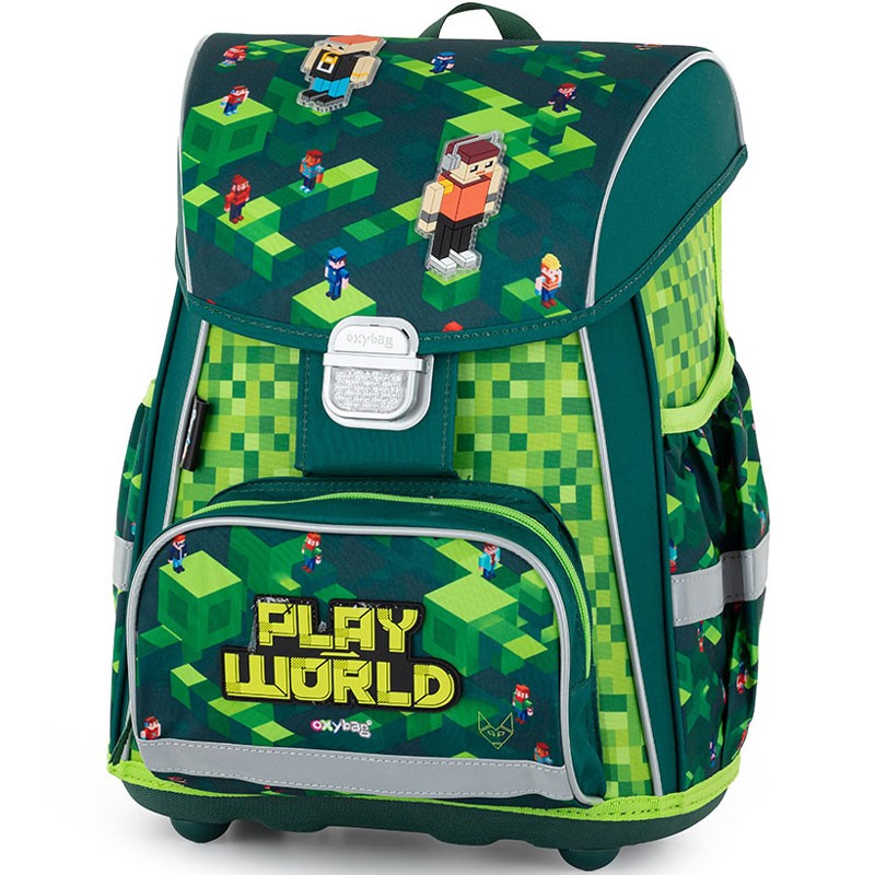 Aktovka pro prvňáčky Oxybag PREMIUM Playworld 23 9dílný set a box na sešity zdarma