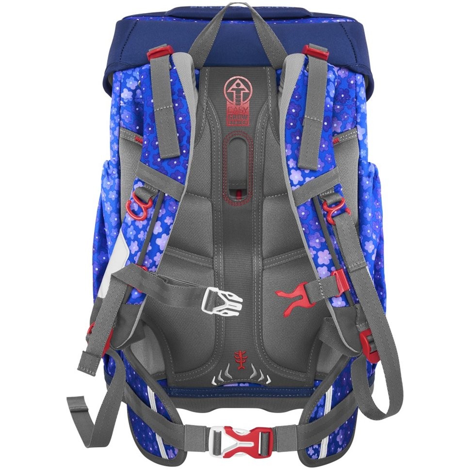 Aktovka pro prvňáčka má hmotnost 1 050 g a je vhodná pro větší děti od 120 do 170 cm výšky. Aktovka disponuje EASY GROW SYSTEMEM, který roste s dítětem (aktovka je vhodná pro děti od 1. do 4. třídy). Má ultralehký zádový panel ze skelných vláken, ergonomicky tvarovaná záda s prodyšným polstrováním a nastavitelné a ergonomické ramenní popruhy. V případě potřeby můžete aktovku upravit za pomocí dotahovacích pásků pro těsné doléhání aktovky k zádům. Školní taška má pro zdravý zad vašich dětu odnímatelný, výškově nastavitelný hrudní popruh s úchyty na konce ramenních popruhů a polstrovaný, odnímatelný bederní pás.