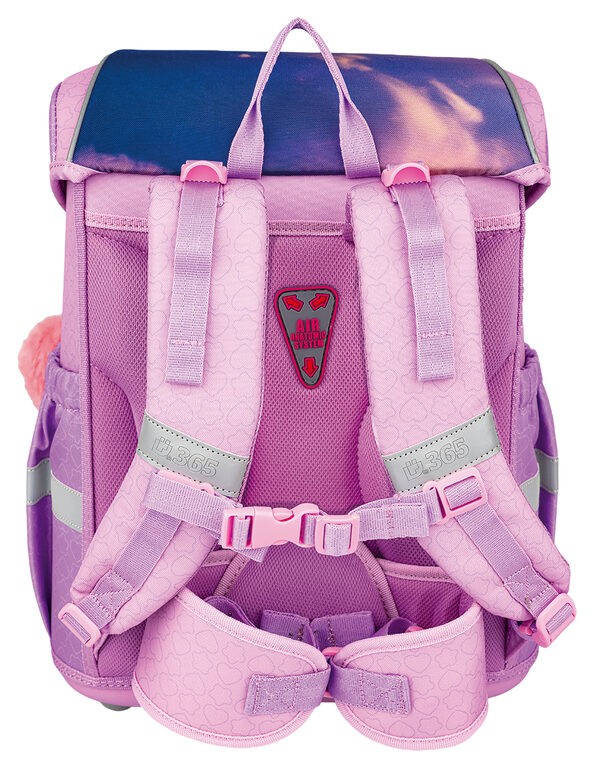 3D ZÁDOVÝ SYSTÉM – školní taška pro prvňáčky perfektně sedí na zádech. Anatomický zádový panel se přizpůsobí páteři dítěte a Air anatomic systém a prodyšné polstrování umožní cirkulaci vzduchu a také příjemné nošení