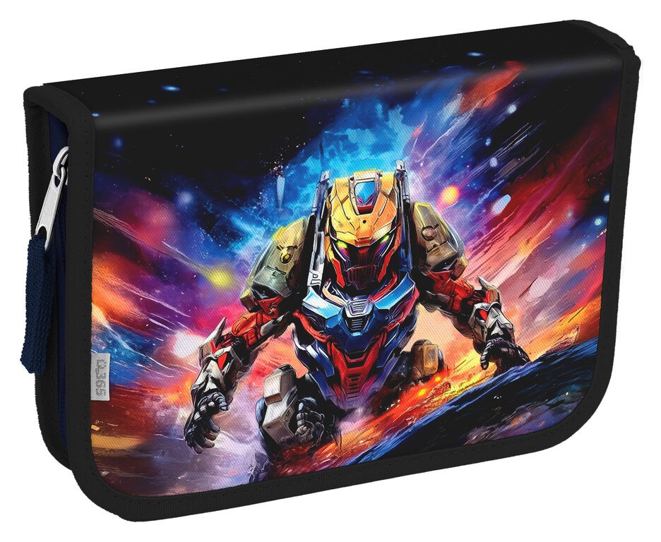 Vnitřní uspořádání – prostorná hlavní vnitřní komora je rozdělená látkovou přepážkou pro uložení boxu na sešity či knih. Součástí hlavní komory je také kapsička pro uložení drobností, odepínatelný kroužek na klíč a štítek na jméno a adresu. Ve víku je průhledná kapsička na rozvrh hodin.