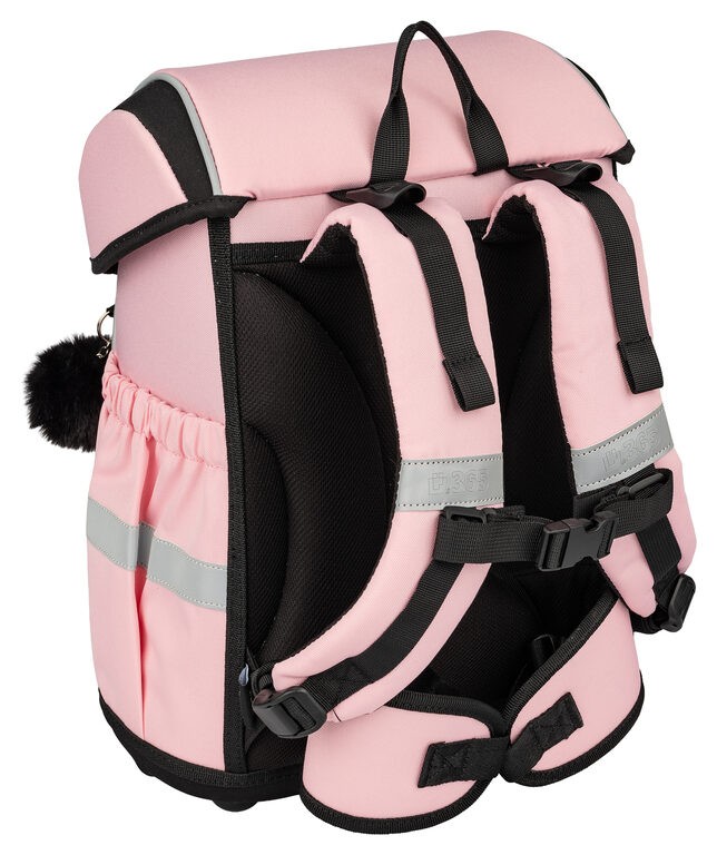 Výškově nastavitelný hrudní a nově i odnímatelný bederní pás s kvalitní přezkou zajistí pohodlné usazení aktovky na zádech dítěte i správné rozložení váhy