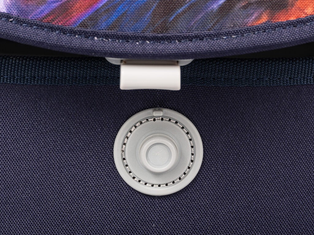 Výškově nastavitelný hrudní a nově i odnímatelný bederní pás s kvalitní přezkou zajistí pohodlné usazení aktovky na zádech dítěte i správné rozložení váhy