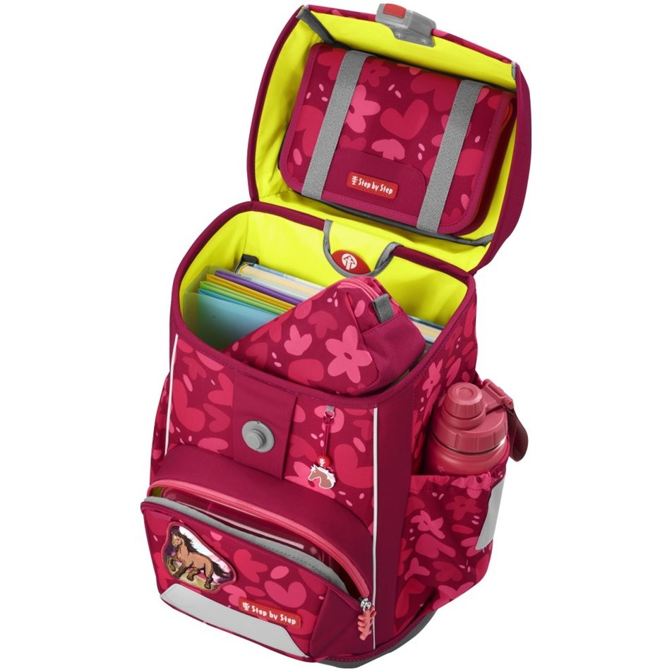 Aktovka pro prvňáčka Step by step Wild Horse Nora, do které se vejde vše potřebné od pera až po sportovní potřeby.