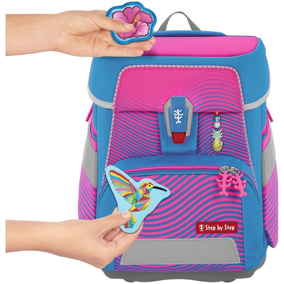Vyměnitelné obrázky MAGIC MAGS lze z aktovky sejmout a nahradit jinými MAGIC MAGS dle osobního výběru. Díky tomu je každá aktovka jedinečná. Vyměnitelné obrázky MAGIC MAGS lze zakoupit jako samostatný set. Set se skládá ze dvou magnetických obrázků a jednoho přívěšku. Pro neutrální design můžete MAGIS MAGS z aktovky odstranit, aniž by na aktovce zůstaly stopy po lepidle nebo suchém zipu.
