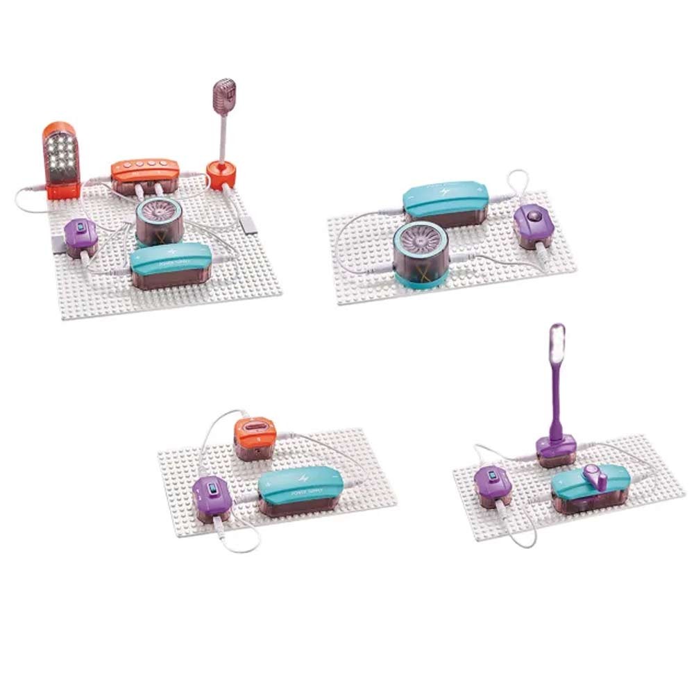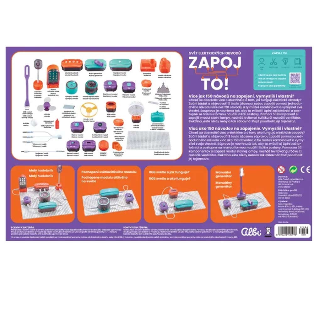 Kreativní vědecká sada od Albi science pro děti od 8 let, se kterou si dítě bezpečně zapojí více jak 150 obvodů a poznává význam a způsoby zapojení elektrických obvodů. Levitující kulička, vodní sprej, manuální generátor proudu a mnoho dalších.