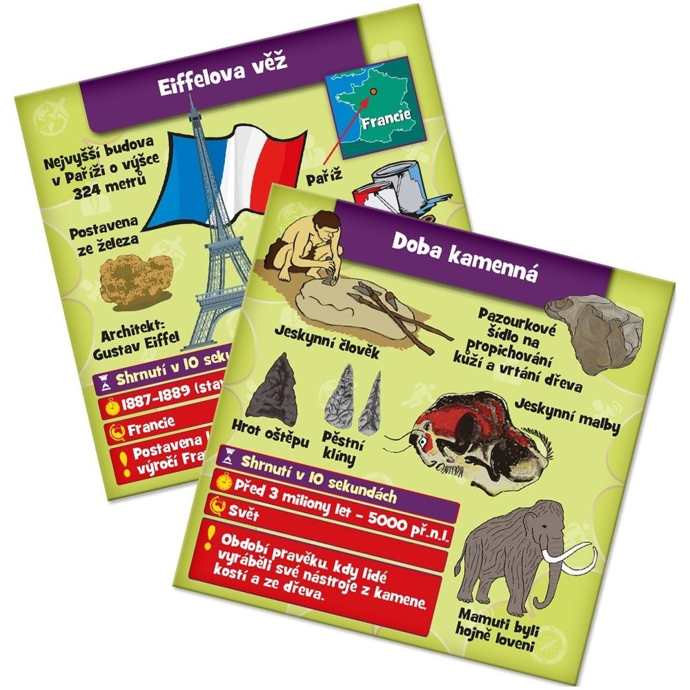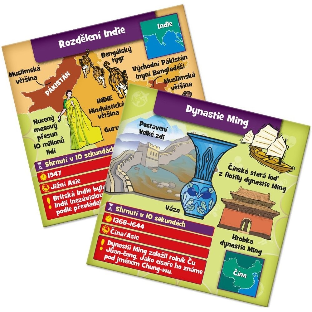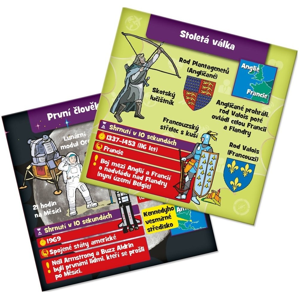 Hra je ve tvaru krychle a obsahuje 71 karet s obrázky z historie a vždy 8 otázkami.