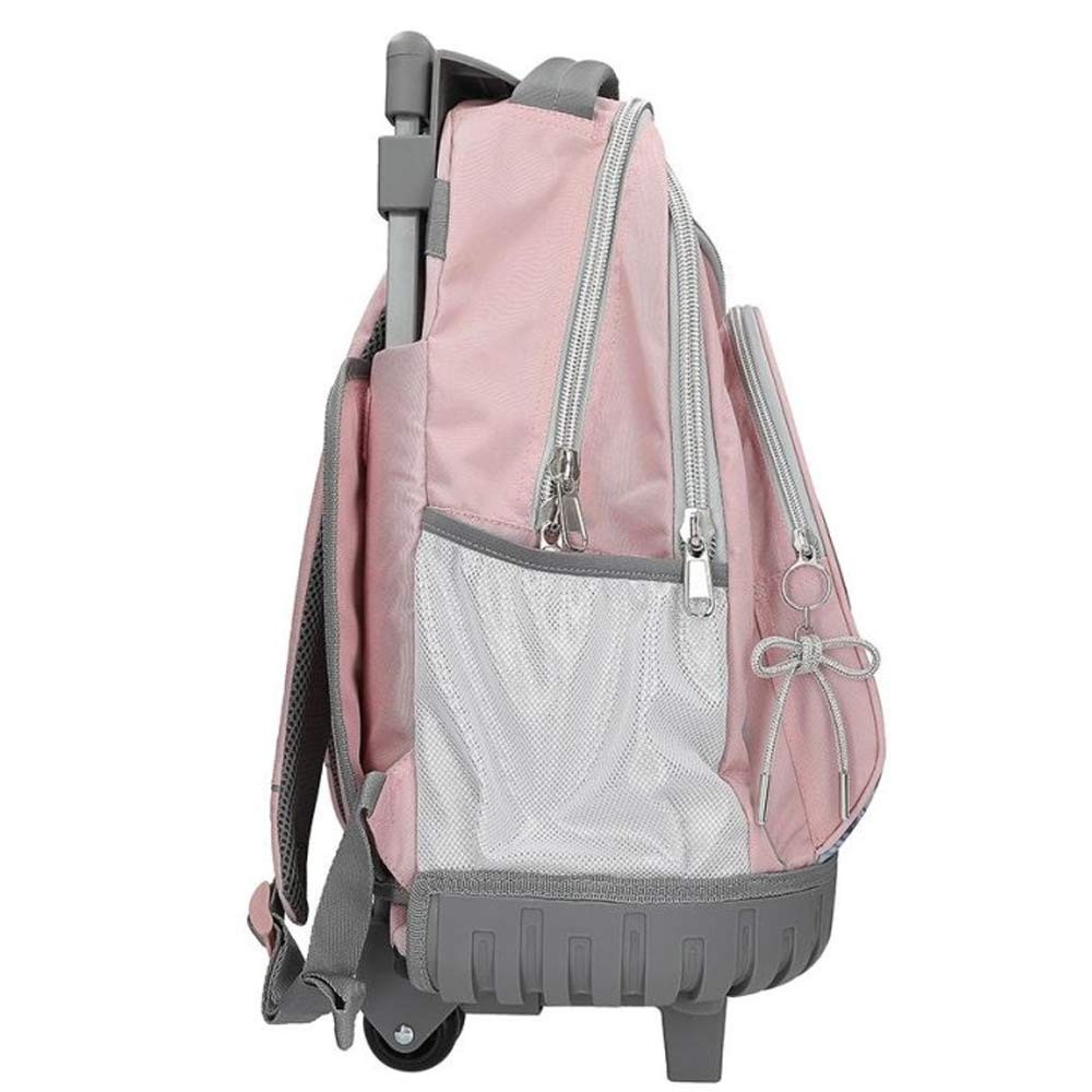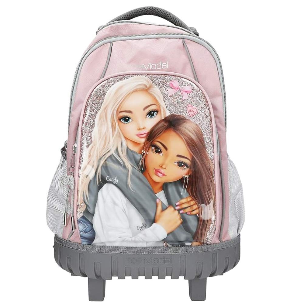 Školní batoh na kolečkách My BFF od TOP Model kombinuje stylový vzhled a praktické řešení pro každodenní nošení do školy. Přední část zdobí motiv oblíbených modelek Candy a Christy, doplněný o třpytivé detaily. Batoh do školy je vybaven integrovaným vozíkem s lehce ovladatelnými kolečky a teleskopickou rukojetí o délce 86 cm, díky čemuž je možné jej snadno táhnout. Pro pohodlné nošení na zádech má batoh polstrované, délkově nastavitelné popruhy a zádové krytí koleček, které brání ušpinění oblečení.