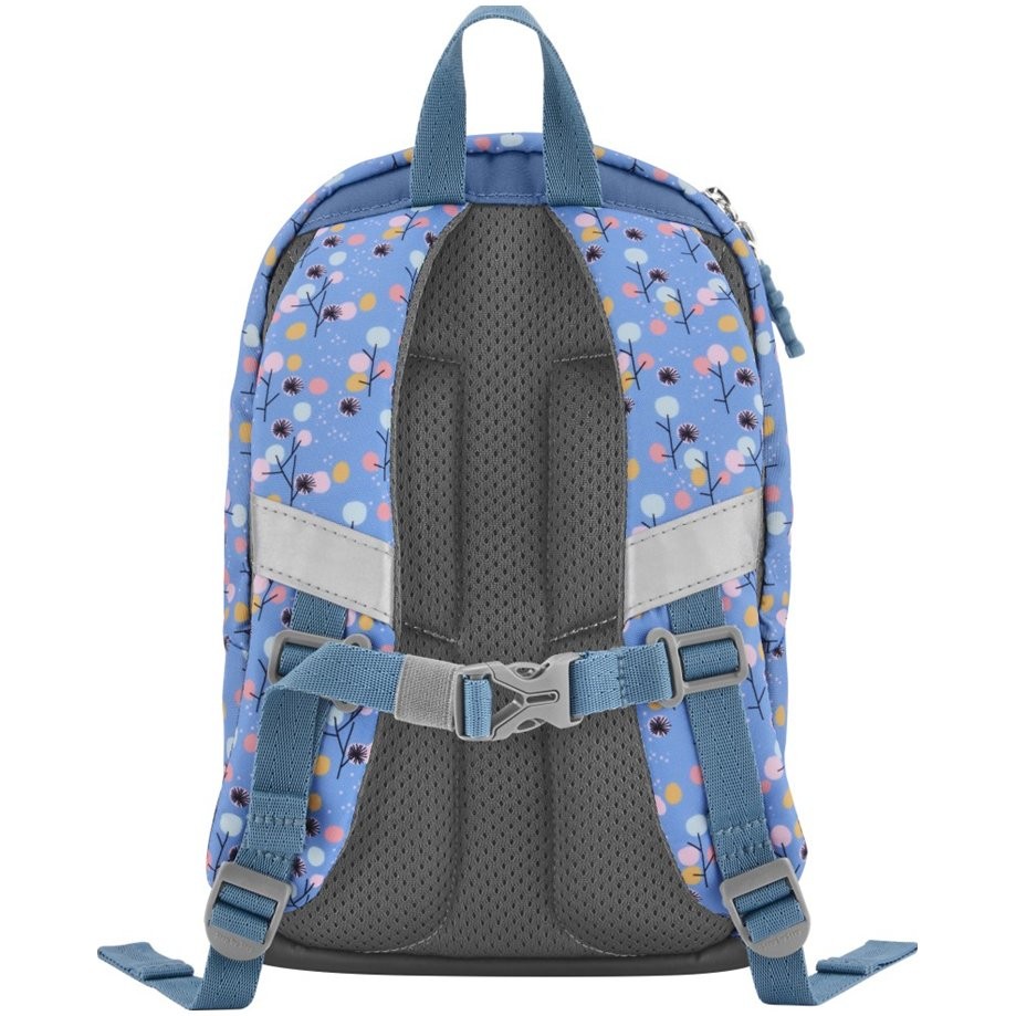 Měkká ergonomicky tvarovaná vypolstrovaná záda, ergonomicky tvarované a polstrované ramenní popruhy s reflexními prvky, výškově nastavitelný hrudní pás s přezkou, přední kapsa s reflexním prvkem na přední straně batohu je reflexní logo a další reflexní prvky. Gumová poutka pro pověšení přívěsků, plyšáků a poutko na zavěšení. Kryté kvalitní zipy, pro děti jsou snadno obsluhovatelné. Pevné dno ochrání před nečistotami a vlhkostí. Samostatná vnitřní přihrádka na převlečení nebo plyšovou hračku a prostor pro jmenovku uvnitř batohu.