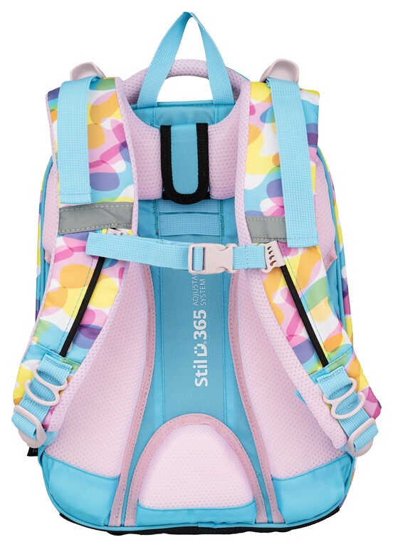 Školní taška je vhodná pro 1. – 4. třídu. Kvalitní, ergonomicky tvarovaný, odlehčený školní batoh je vybaven reflexními prvky a anatomicky tvarovanými zády s pevnou konstrukcí. Školní batohy Stil jsou certifikovány a ověřeny lékaři.