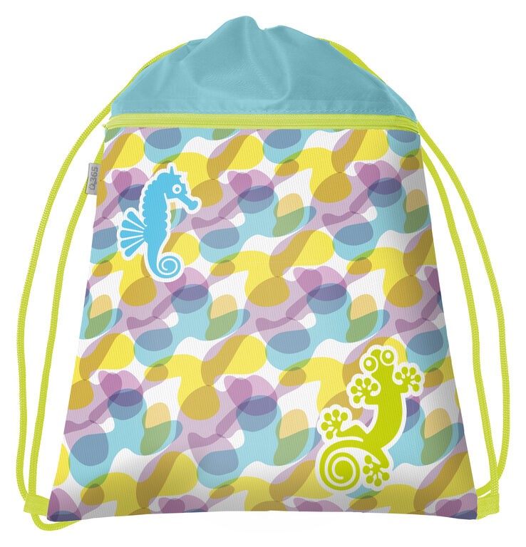 Vak na tělocvik vhodný pro žáky 1. stupně ZŠ vyroben z pevného, kvalitního materiálu. Rozměr sáčku na přezůvky 44 x 32 cm.