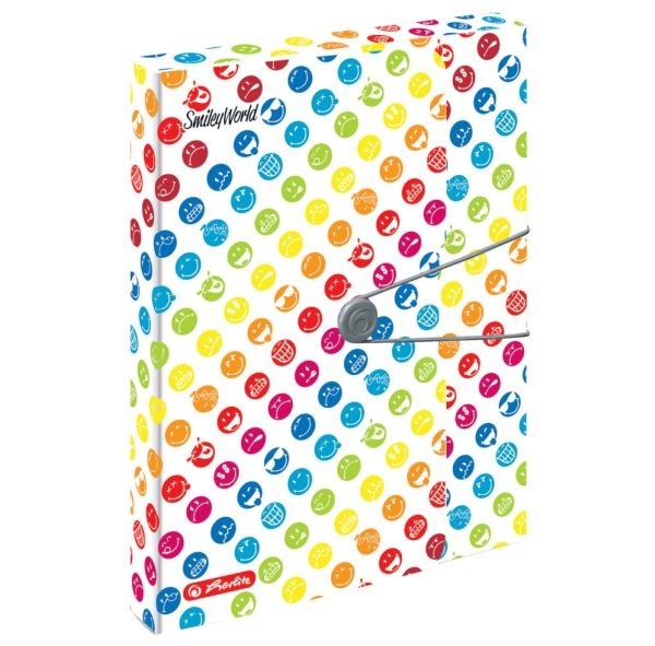Lehký plastový box použitelný stejně jako klasické desky na sešity, formátu A4 z kolekce Smiley World s gumičkou.