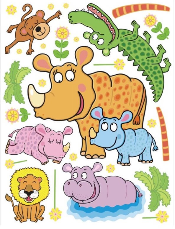 Sada samolepicích obrázků s motivem Jungle. Samolepky jsou určeny k dekoraci zdí a jiných hladkých ploch (dveře, skříně) . Lze je opakovaně nalepovat.
