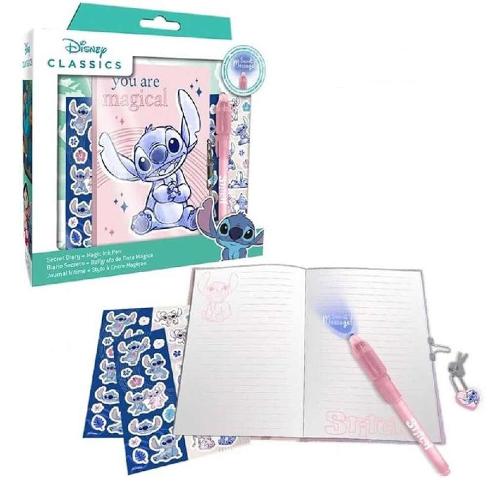 Zápisník linkovaný se zámkem s magickým perem Stitch a 2 archy samolepek v dárkovém balení. Pište své zprávy pomocí pera Magic Ink Pen. Bude to vypadat, jako by nebylo nic napsáno, ale když rozsvítíte LED světlo v horní části pera, odhalí vaše hlavní tajemství! K tomu všemu je deník na zámek s klíčem. Nikdo se tam nedostane!