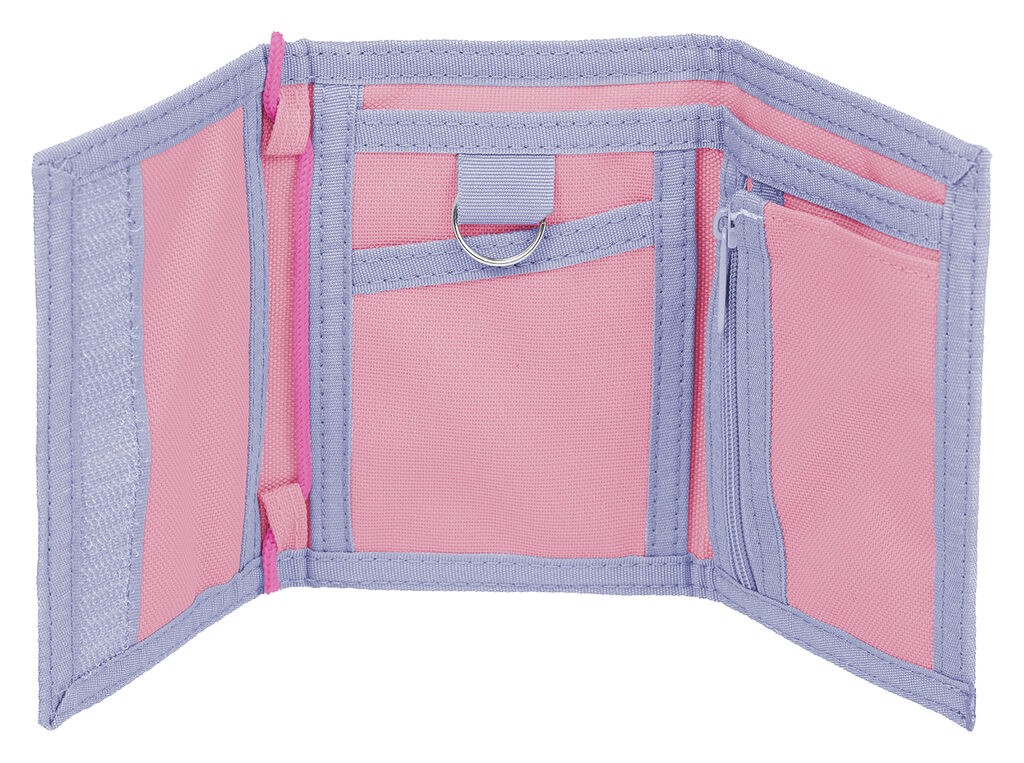 Na vnější straně má průhlednou kapsičku na průkazy či karty. Uvnitř naleznete chytrý organizér s pěti kapsami na bankovky a další drobnosti, kapsu na zip na mince a kovový kroužek na klíče.