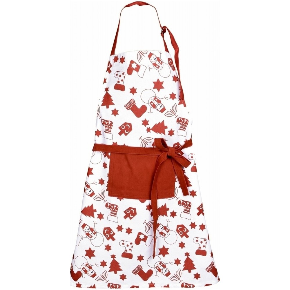 Šňůrka kolem krku jde nastavit pomocí stahovacích kroužků. Zástěra má praktickou kapsu.