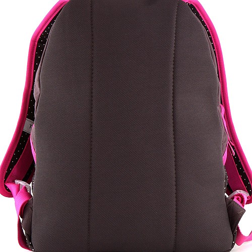 Záda batohu jsou příjemně vyměkčená a prodyšná. Anatomicky tvarované ramenní popurhy v ideální šíři jsou pro maximální komfort dítěte polstrované, též vzdušné a lze je výškově nastavit. V horní části textilní poutko na zavěšení či krátkodobé přenášení.