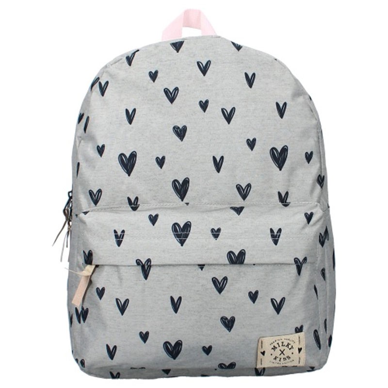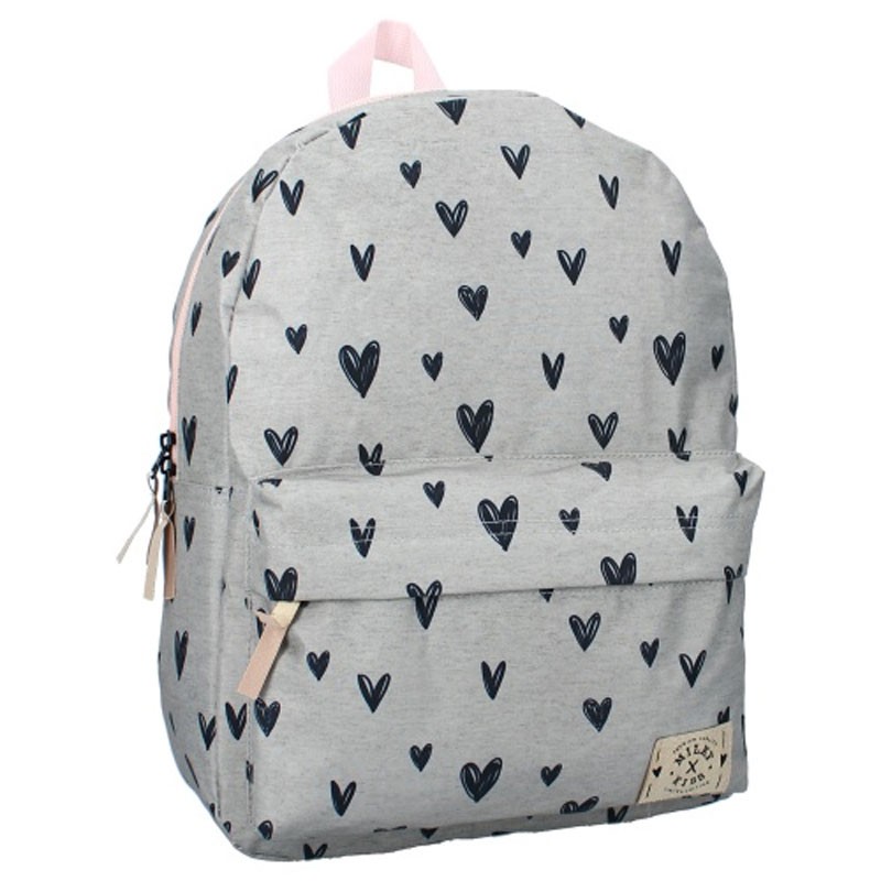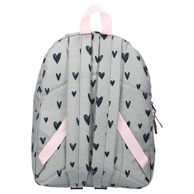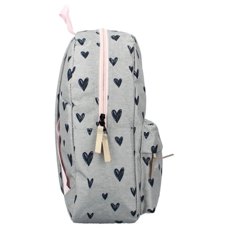 Dětský batůžek v šedé barvě s potiskem srdíček má prostornou hlavní přihrádku, do které se vejdou všechny věci na výlet i do školky a malou přední kapsu na drobnosti. Ramenní popruhy jsou délkově nastavitelné a poutko umožňuje snadné zavěšení tašky. Batoh je v krásných duhových barvách.