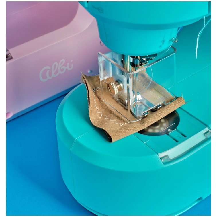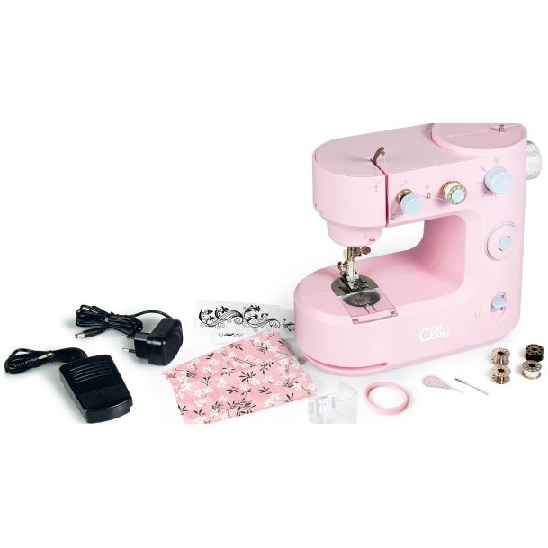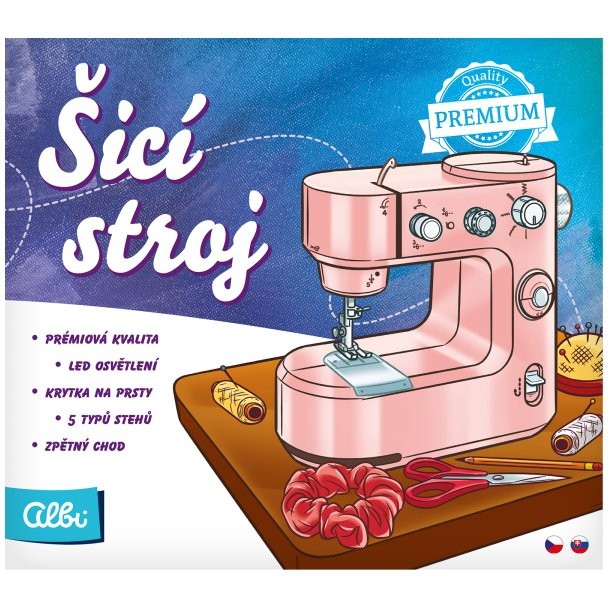 Kvalitní a designový šicí stroj pro děti, na kterém se naučíte základy šití, zabaví děti od 8 let. Šicí stroj od Albi je napájen adaptérem (do elektrické zásuvky) s příslušenstvím (cívky, nitě, jehla, navlékátko) a materiálem na výrobu gumičky do vlasů. Rozměry balení: 30 cm × 26 cm × 17 cm