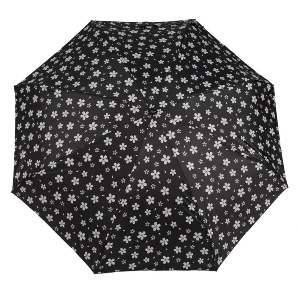 Dívčí mini deštník s jemným vzorem bílých okvětních lístků na okouzlujícím černém podkladě Vám dodá pocit, jako byste se ocitli v rozkvetlé zahradě.