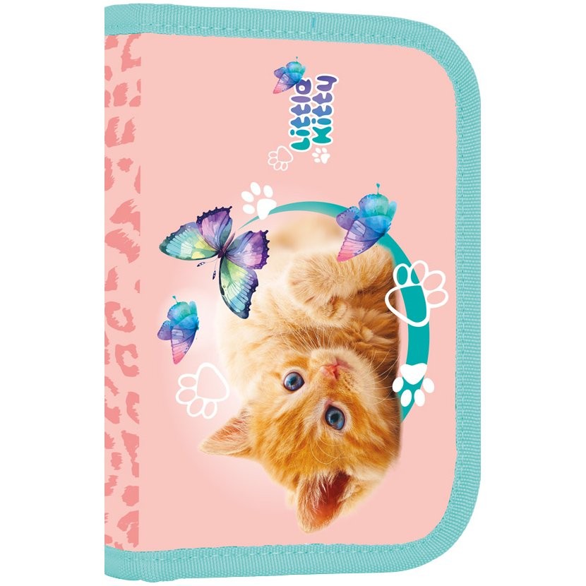 Nevybavený jednopatrový školní penál s 2 klopama obsahuje 25 gumových poutek pro uchycení psacích potřeb. Na vnitřních klopách jsou průhledné fólie pro rozvrh hodin.
