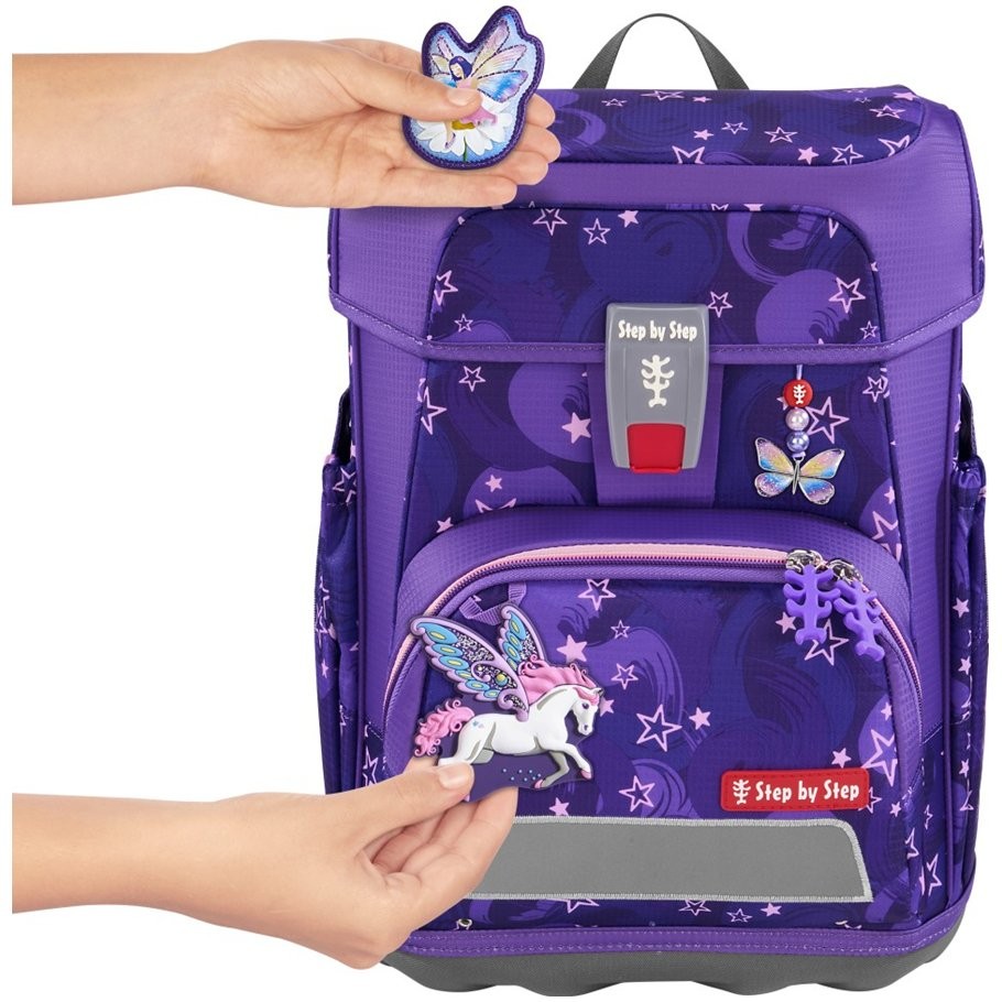 Objevte zábavný set dvou magnetických obrázků a jednoho přívěšku pro školní aktovky Step by Step s integrovanými magnetickými plochami. Díky odnímatelným a snadno vyměnitelným motivům si děti mohou aktovku či batůžek ozdobit podle vlastního vkusu. Magnetické obrázky pevně přilnou k magnetickým místům na klopě nebo přední kapse a lze je kdykoli odstranit bez zanechání stop. Součástí je i přívěšek s poutkem pro jednoduché připevnění.