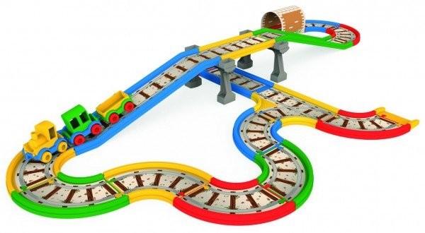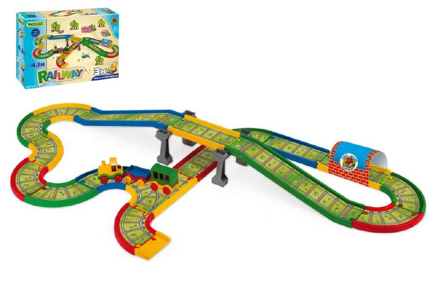 Dráha Kid Cars - Železnice s městem 4,1m v krabici 59x40x15cm Wader