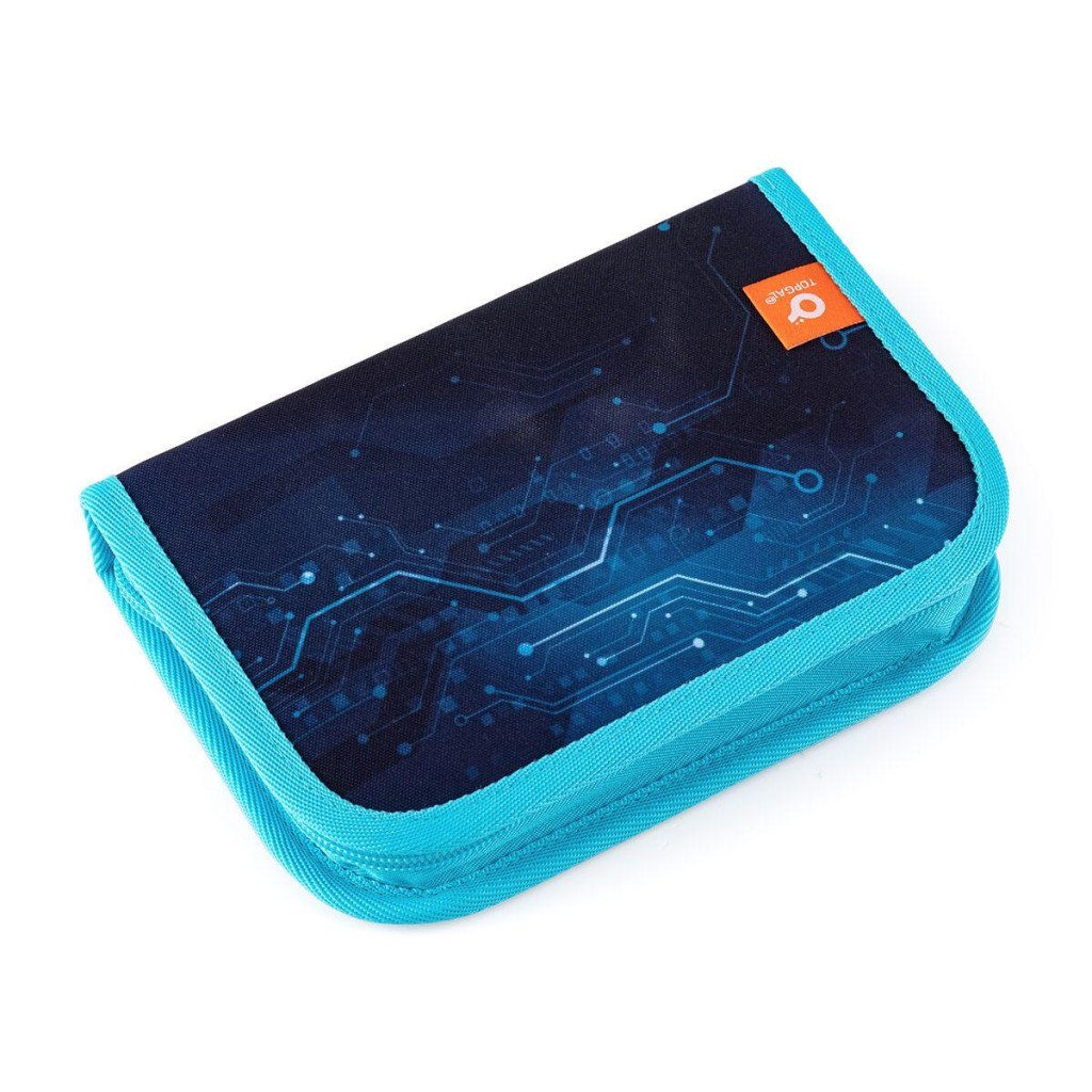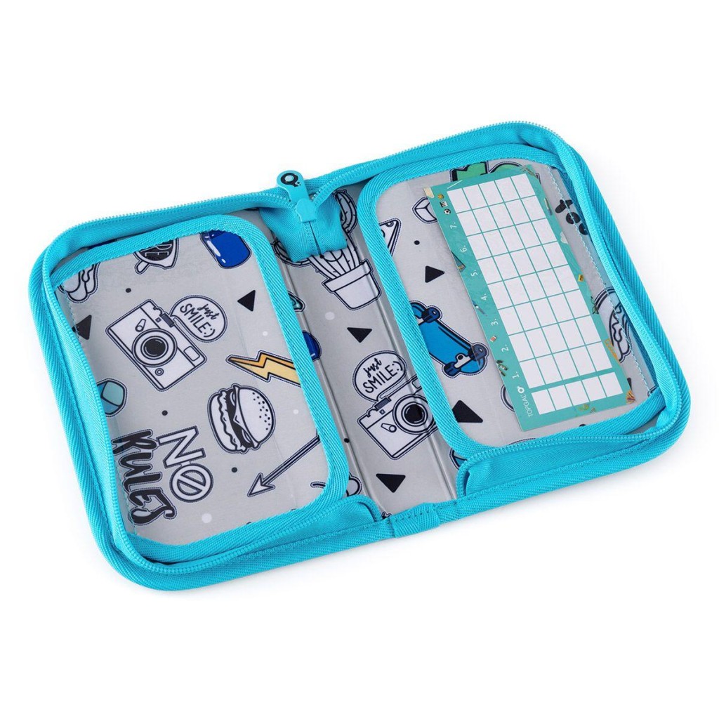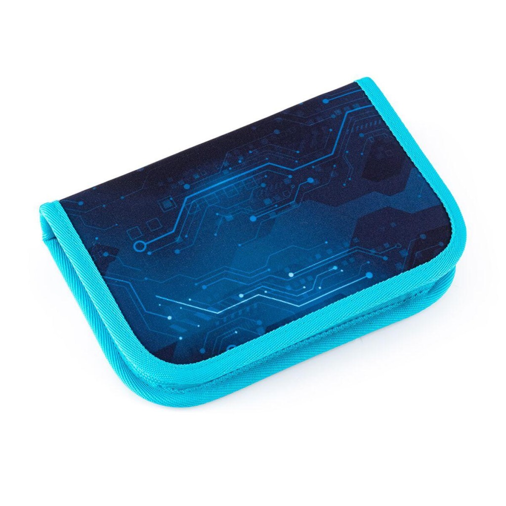 Jednopatrové školní pouzdro se dvěma klopnami je vybaveno 21 klasickými gumovými úchyty na pastelky a fixy, třemi širšími úchyty na pravítko, kružítko či nůžky a dvěma většími úchyty na gumu a ořezávátko. Pod klopou z průhledné folie najdete rozvrh hodin, druhé poslouží třeba i na taháky.