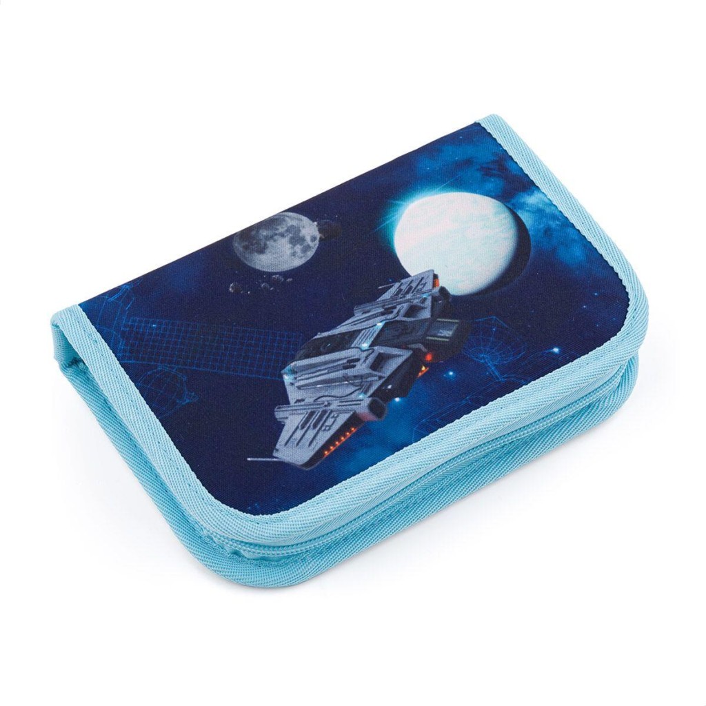 Jednopatrové školní pouzdro se dvěma klopami je vybaveno 21 klasickými gumovými úchyty na pastelky a fixy, třemi širšími úchyty na pravítko, kružítko či nůžky a dvěma většími úchyty na gumu a ořezávátko. Pod klopou z průhledné folie najdete rozvrh hodin, druhé poslouží třeba i na taháky.