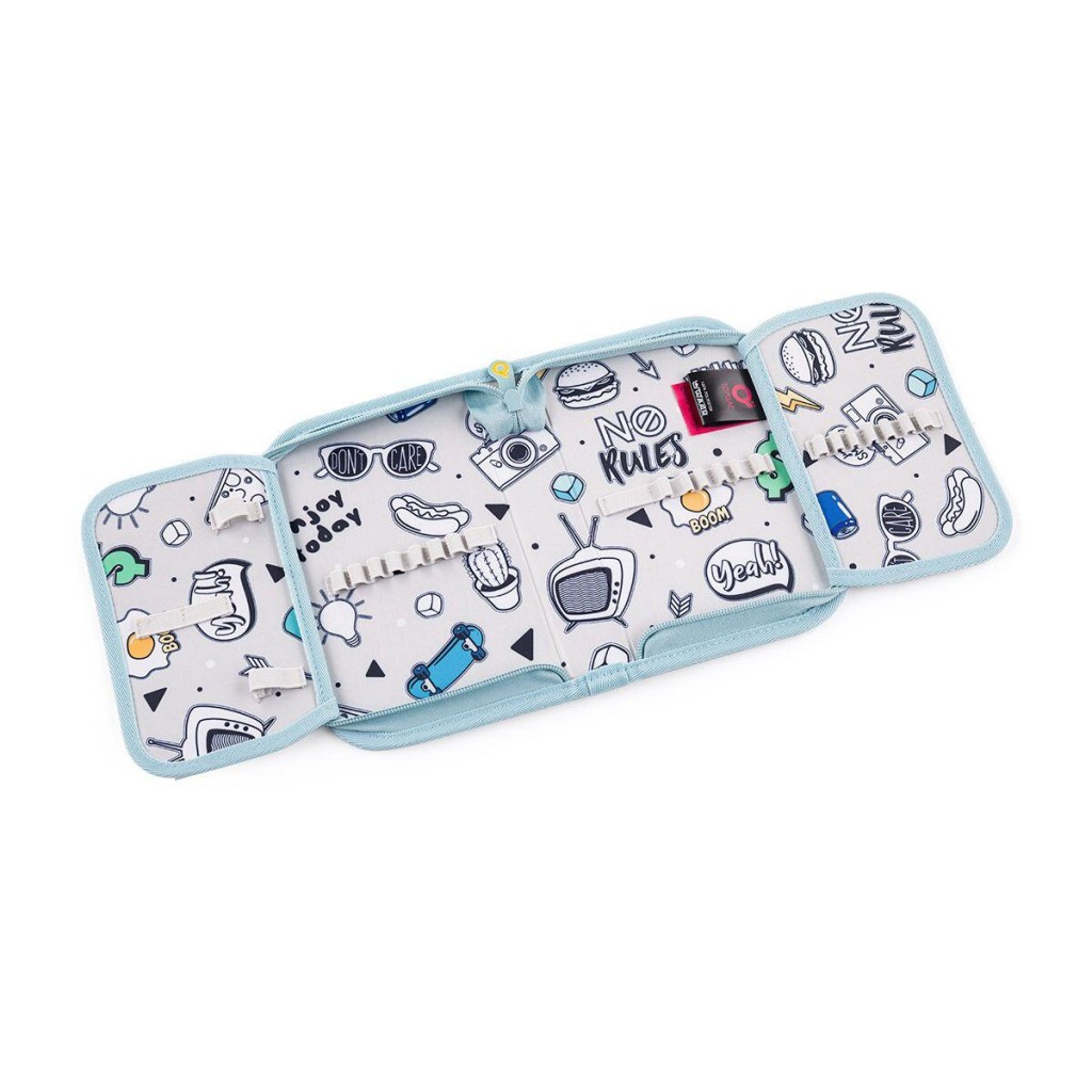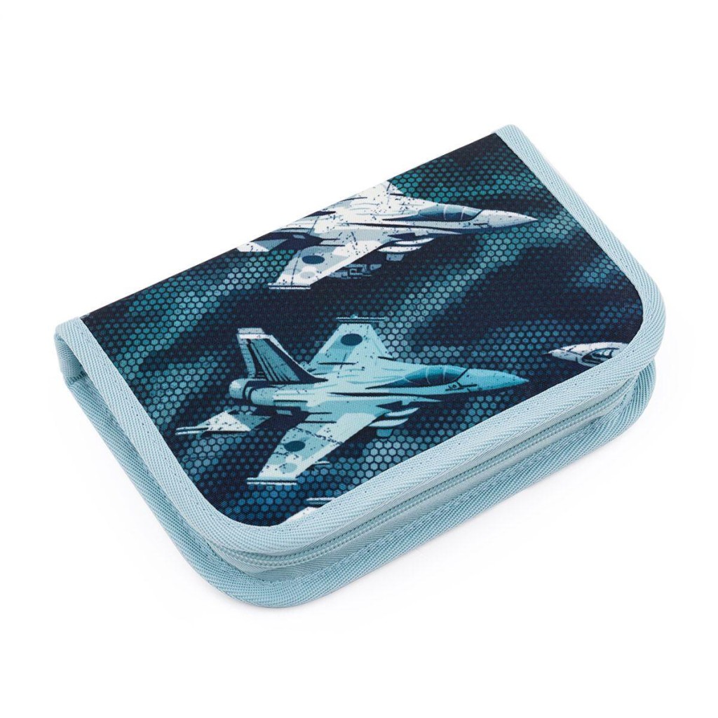 Jednopatrové školní pouzdro se dvěma klopami je vybaveno 21 klasickými gumovými úchyty na pastelky a fixy, třemi širšími úchyty na pravítko, kružítko či nůžky a dvěma většími úchyty na gumu a ořezávátko. Pod klopou z průhledné folie najdete rozvrh hodin, druhé poslouží třeba i na taháky.