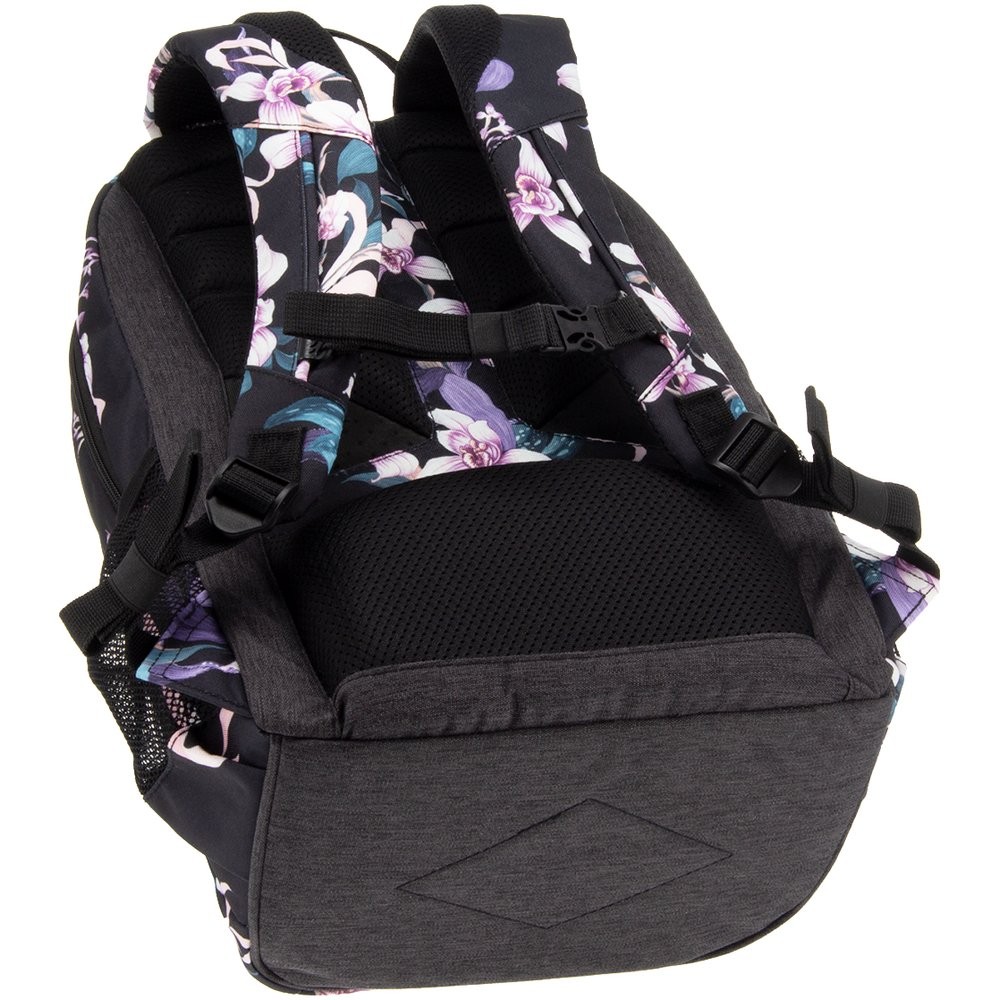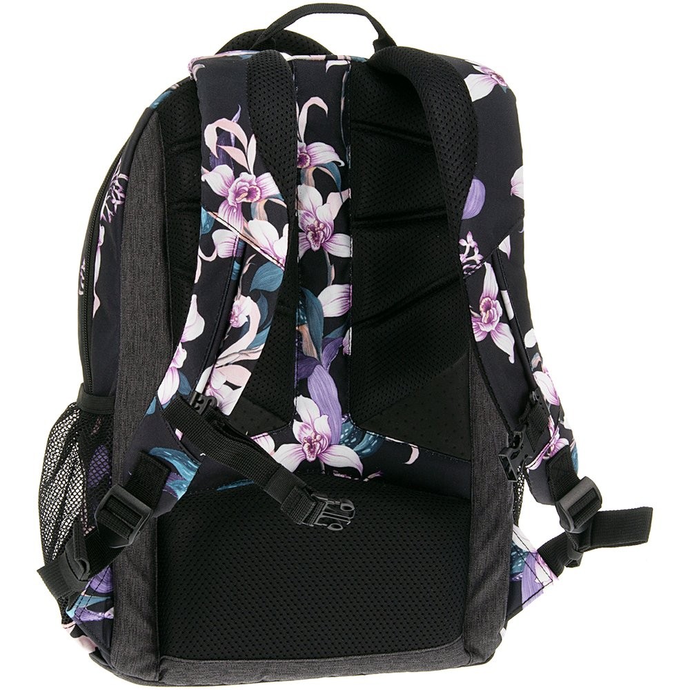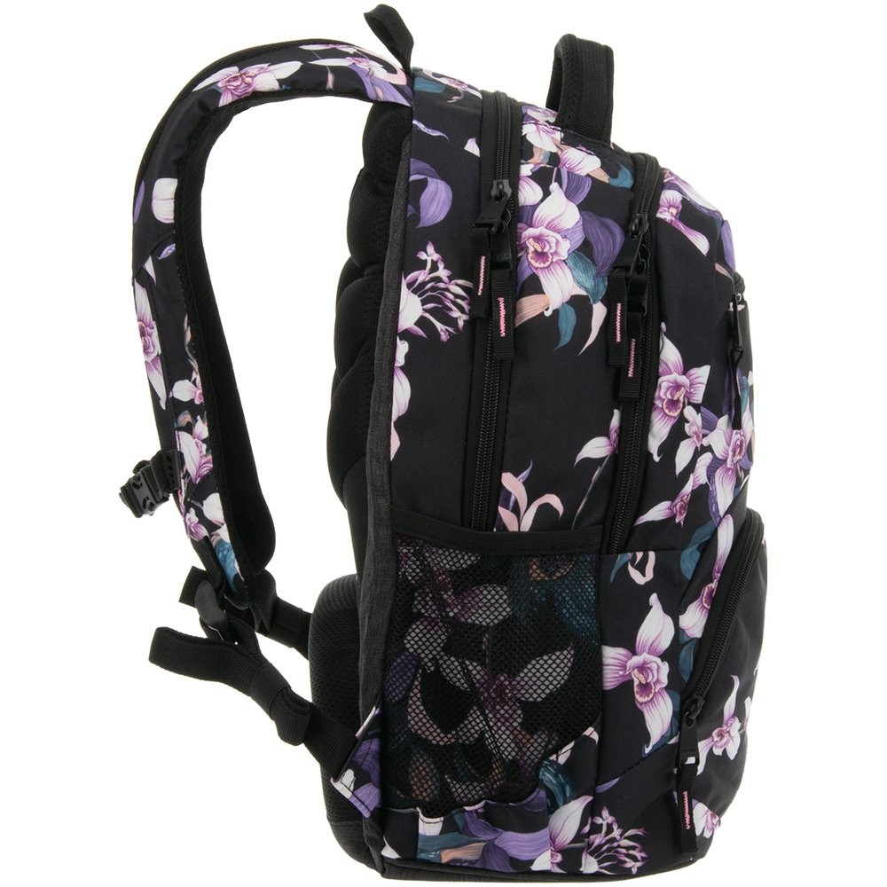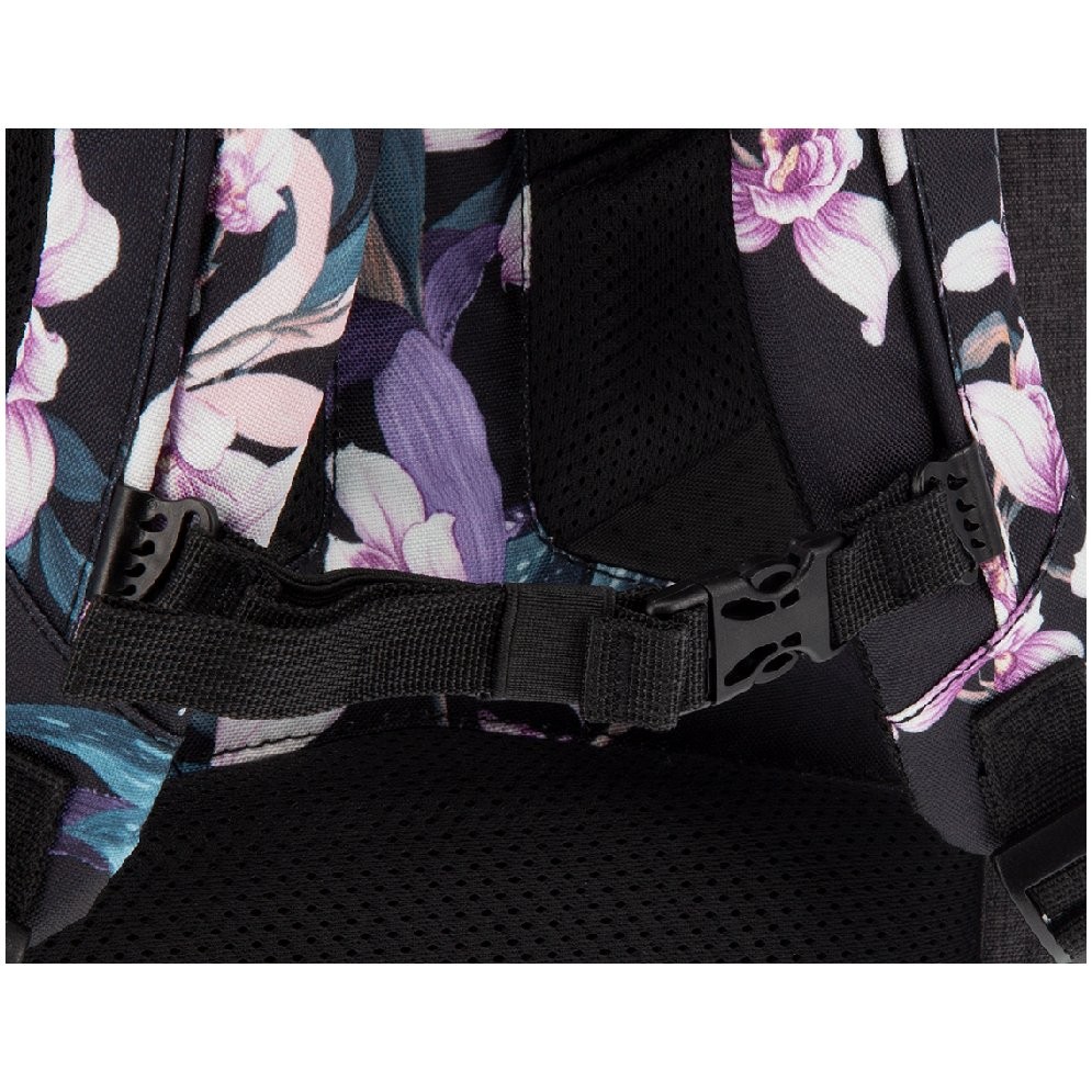 Prostorný dvoukomorový batoh pro 6 - 9.třídu základní školy a studentky.v designu květinového motivu Orchideje. Záda batohu jsou ergonomické s dokonalým odvětráváním se systémem Air Flow Max. Popruhy jsou měkké a délkově stavitelné, stabilitu zajišťuje hrudní pás s přezkou. Na bocích batohu jsou dvě síťované přihrádky na láhev či jiné drobné předměty.