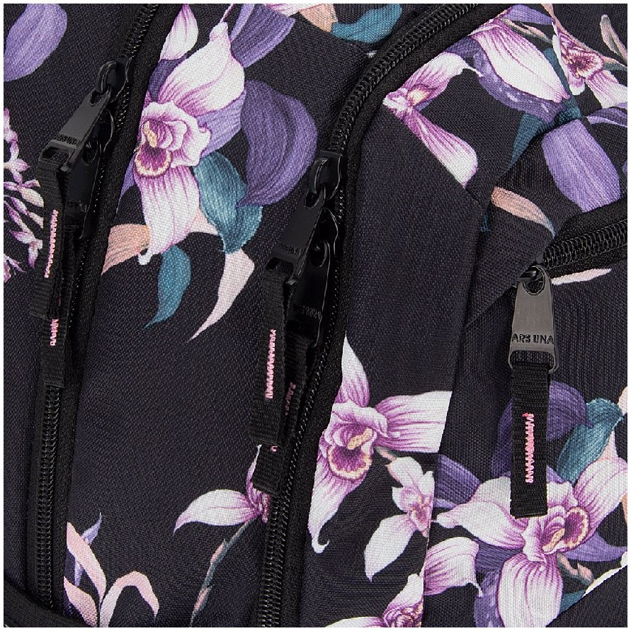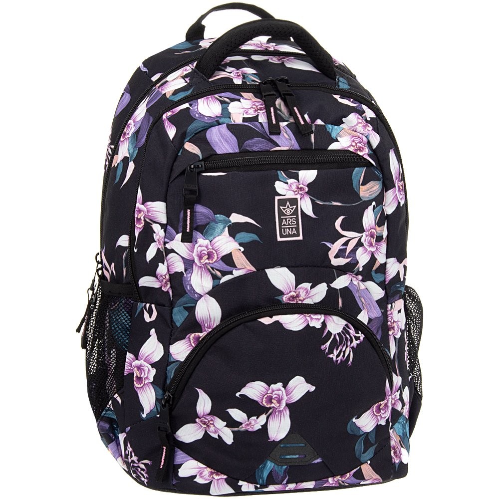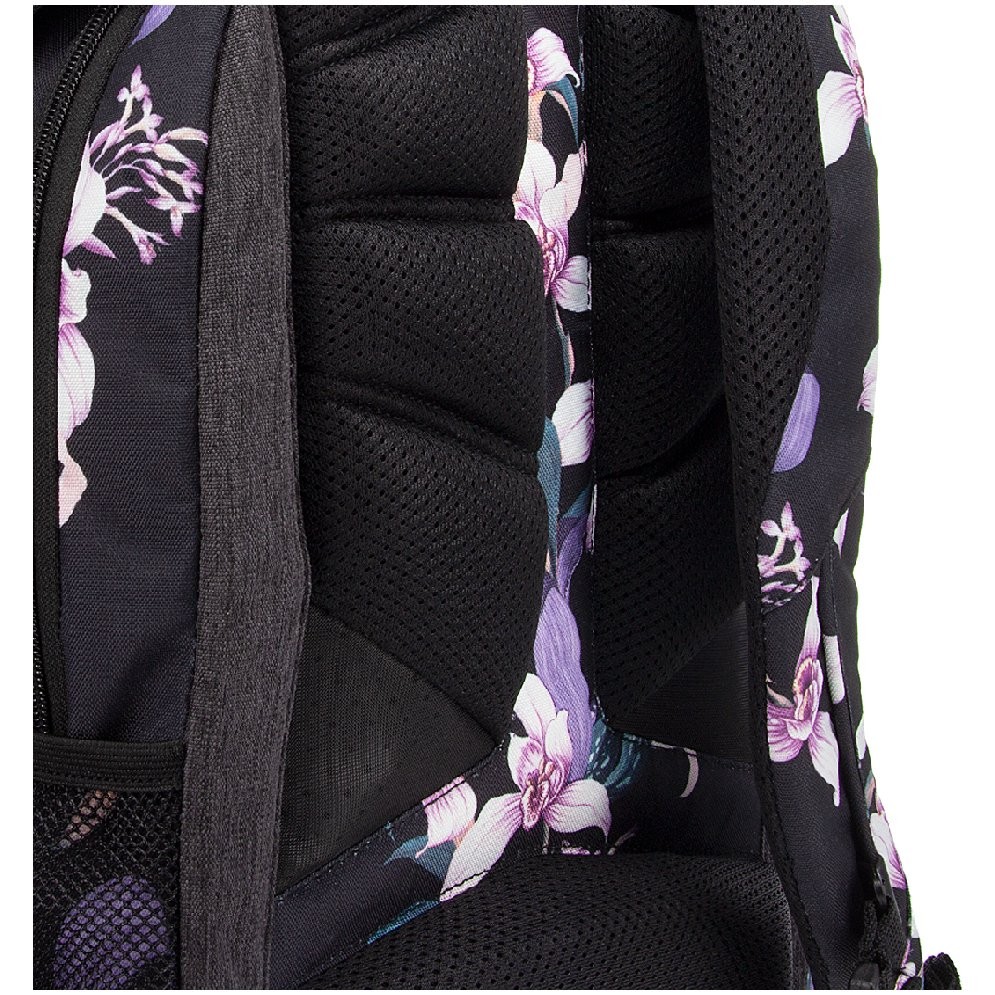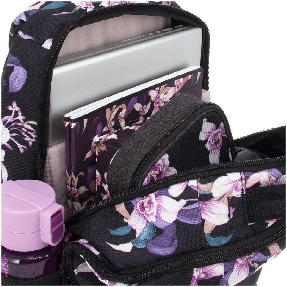 Prostorný dvoukomorový batoh pro 6 - 9.třídu základní školy a studentky.v designu květinového motivu Orchideje. Záda batohu jsou ergonomické s dokonalým odvětráváním se systémem Air Flow Max. Popruhy jsou měkké a délkově stavitelné, stabilitu zajišťuje hrudní pás s přezkou. Na bocích batohu jsou dvě síťované přihrádky na láhev či jiné drobné předměty.