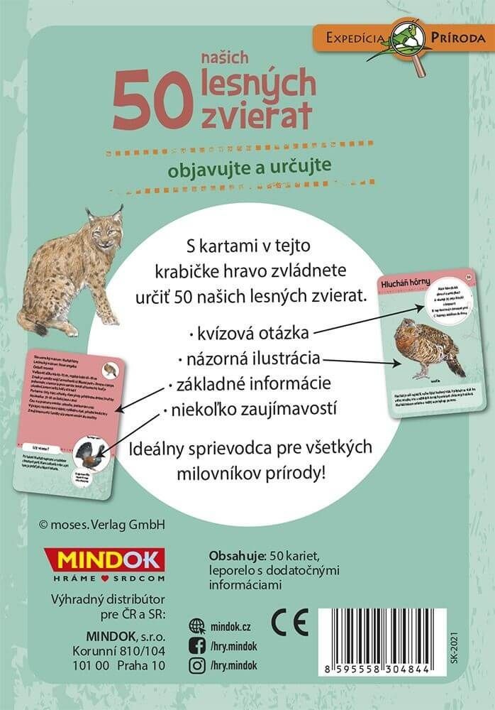 Vďaka kartám v tejto krabičke zvládnete hravo určiť 50 našich lesných zvierat. Na kartách nájdete kvízové ??otázky, názornú ilustráciu, základné informácie a tiež niekoľko zaujímavostí. Ideálny sprievodca pre všetkých milovníkov prírody!