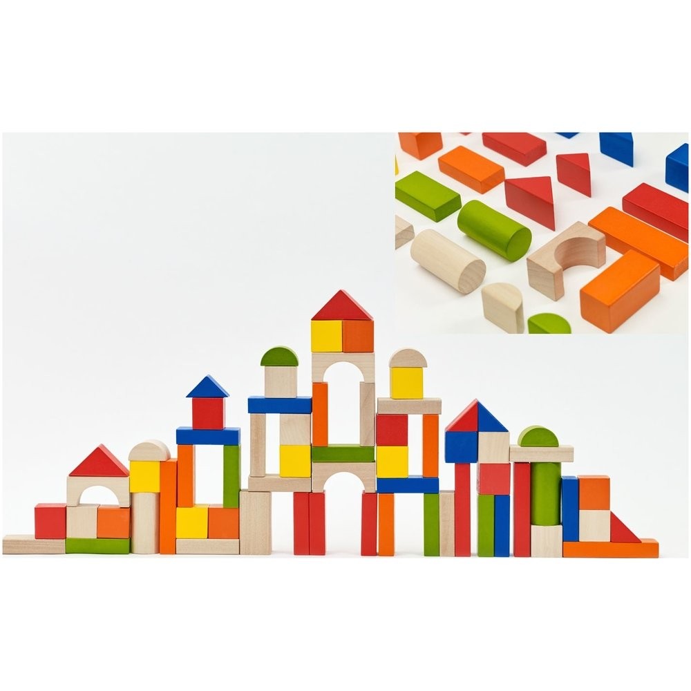 Kostky stavebnice dřevo 100ks + vkládačka v papírovém kbelíku
