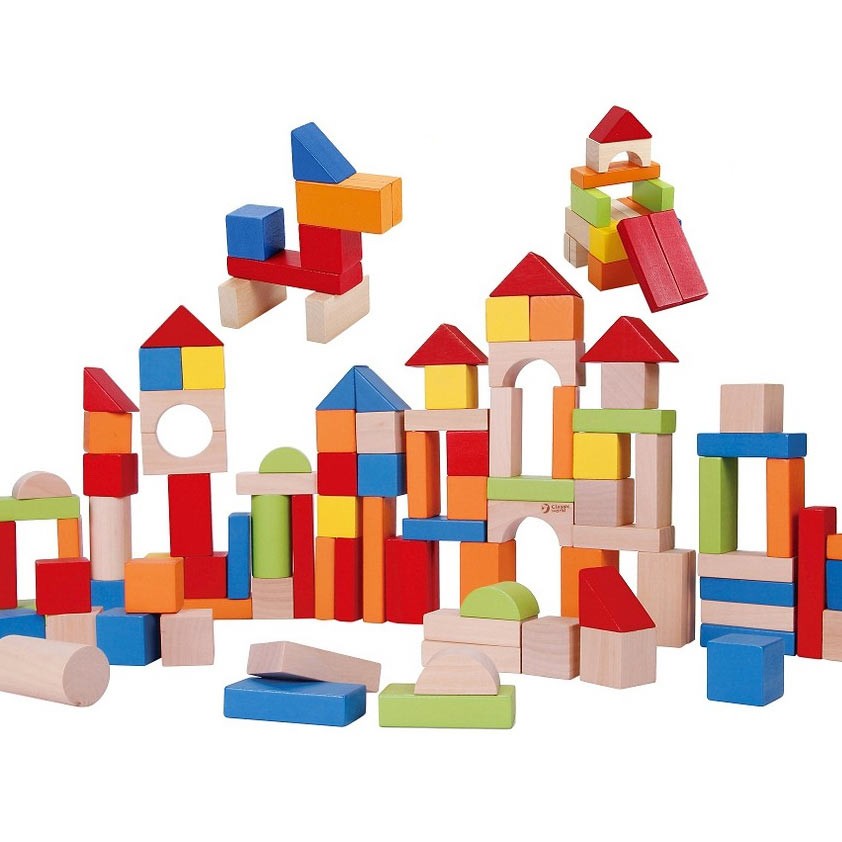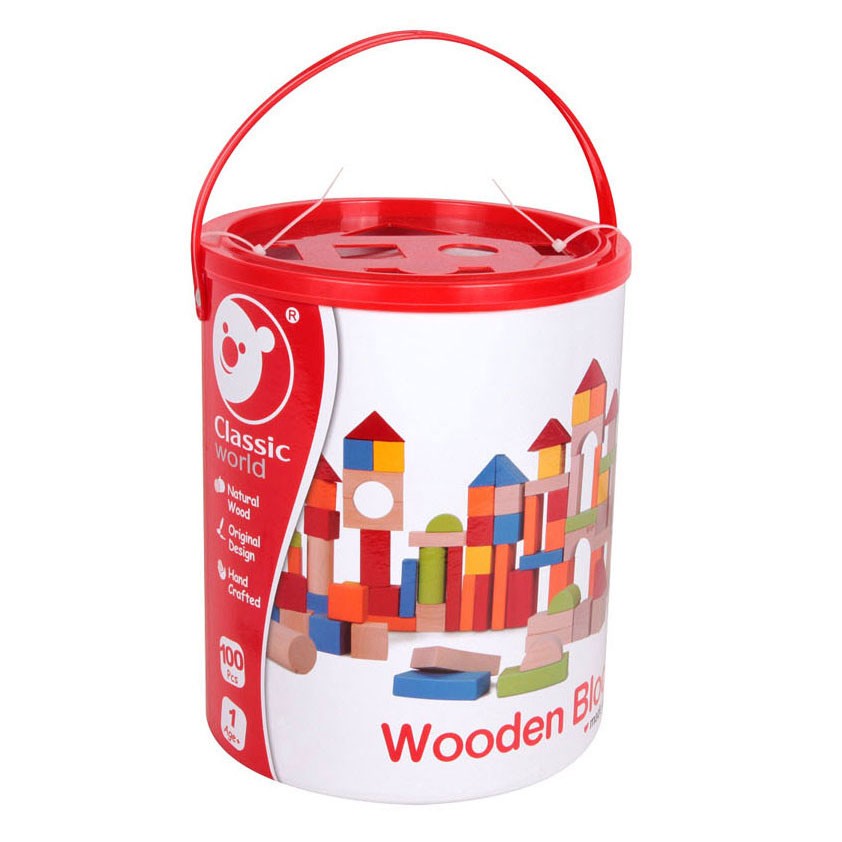 Oblíbená dřevěná stavebnice pro nejmenší děti. Nové barevné provedení zaujme nejedno dětské oko. Stavebnice obsahuje barevné kostky různých tvarů. Stavebnice je ideální hračkou, která rozvíjí tvořivé a kombinační schopnosti dítěte. Stavebnice rozvíjí logické myšlení, učí děti trpělivosti a vytrvalosti. Víčko kbelíčku obsahuje otvory, které mohou sloužit jako vkládačka.
