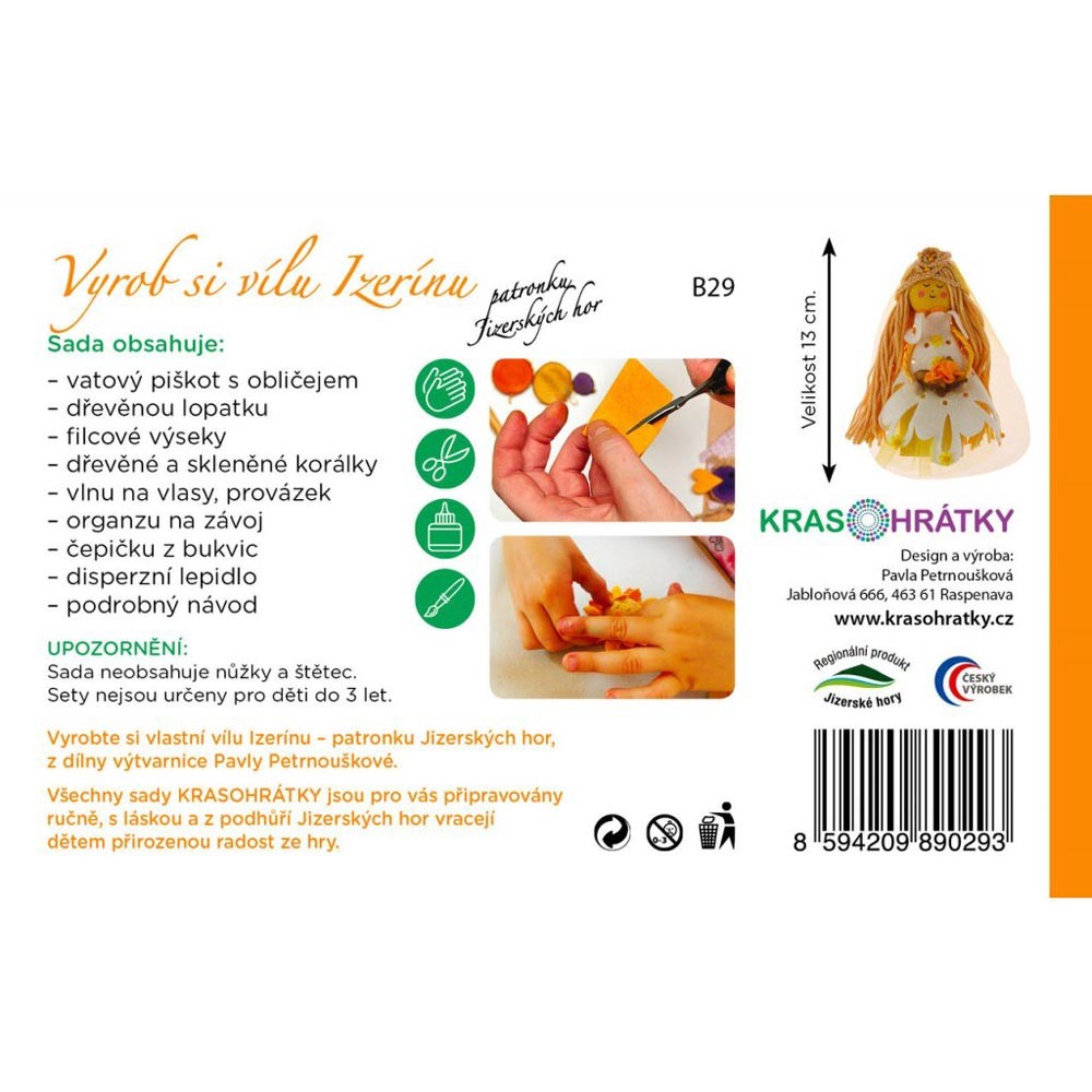 Vyrobte si vlastní vílu Izerínu z dílny výtvarnice Pavly Petrnouškové. Všechny sady KRASOHRÁTKY jsou pro vás připravovány ručně, s láskou a z podhůří Jizerských hor vracejí dětem přirozenou radost ze hry.