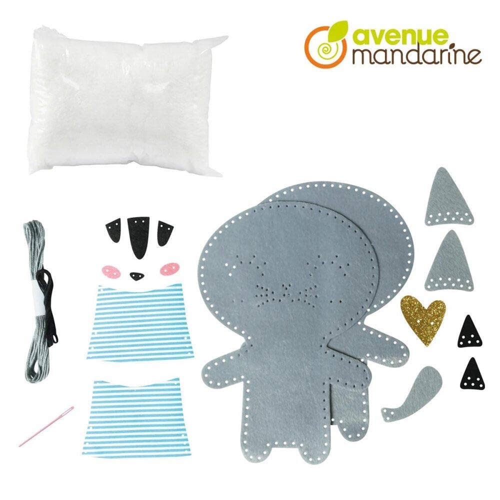 Kreativní sada Avenue Mandarine - šití pro děti kočička Tina z kolekce Couz'IN, která umožňuje dětem objevení světa šití. Předem nastříhané kusy měkké barevné plsti s malými otvory usnadňují dětem použití jehly.