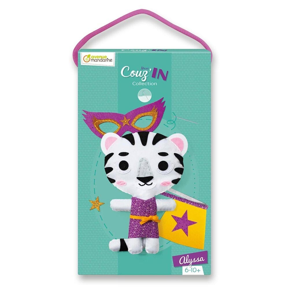 Stylová kreativní sada Avenue Mandarine - šití pro děti tygřice Alyssa z kolekce Couz'IN, která umožňuje dětem objevení světa šití. Předem nastříhané kusy měkké barevné plsti s malými otvory usnadňují dětem použití jehly.