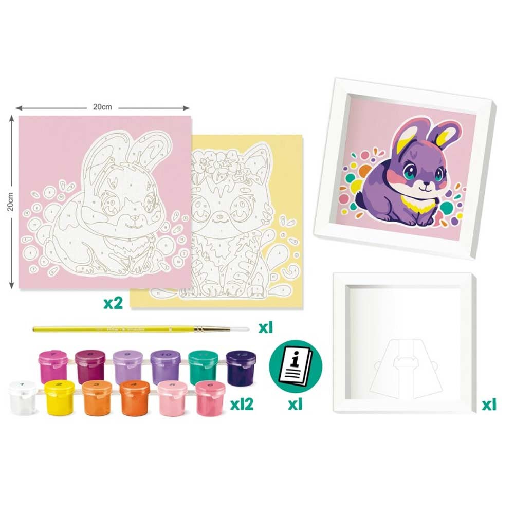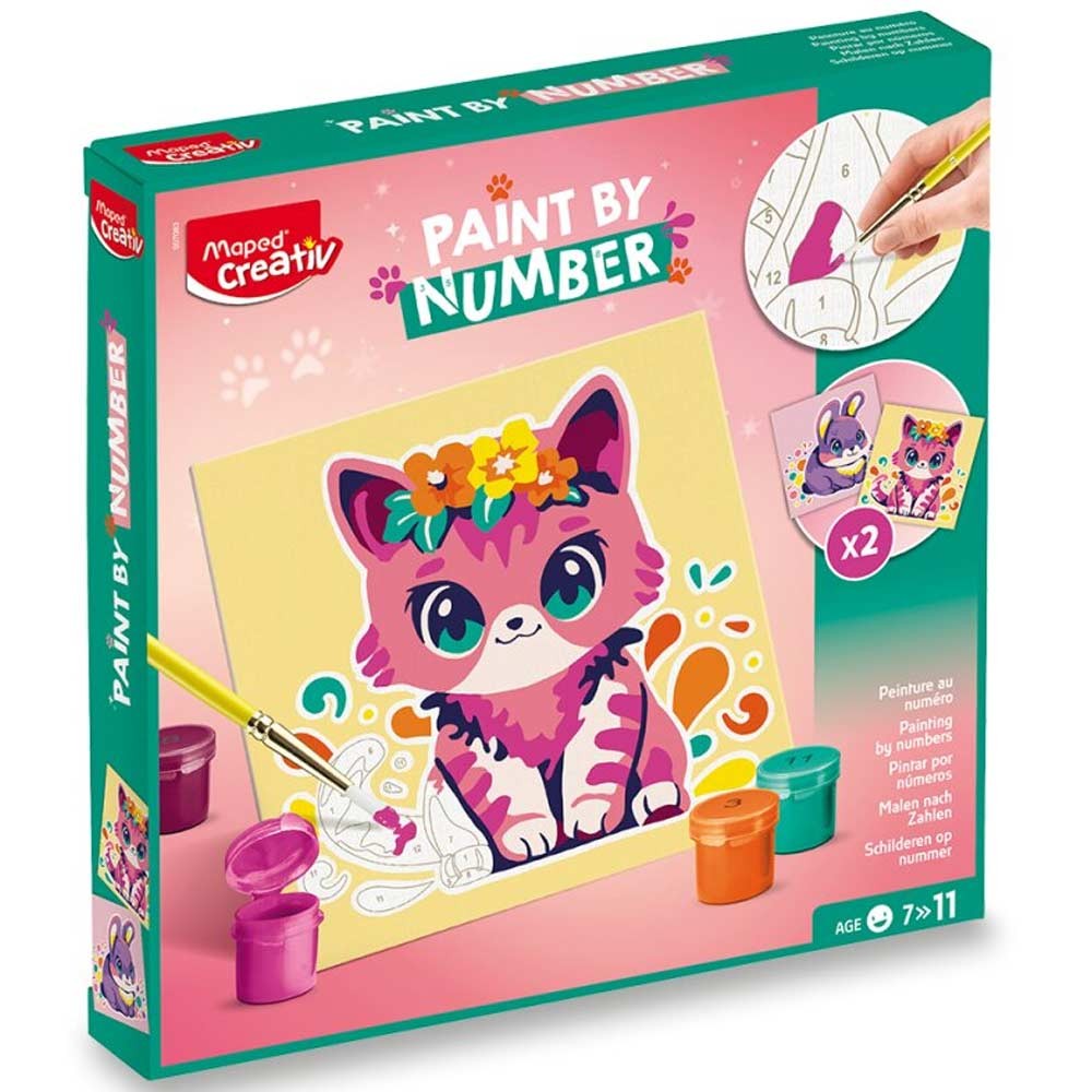Kreativní tvoření se sadou Maped Creativ Paint by number s motivy kočky a králíka k vytváření krásných obrázků pomocí techniky malování podle čísel.