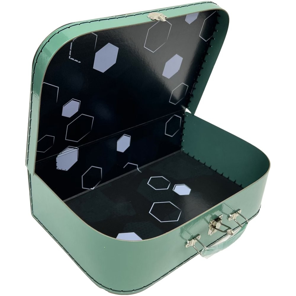 Kufřík na výtvarnou výchovu pro chlapce Fotbal má vnitřní potisk. Kufřík na školní pomůcky je lesklý, s vniřní grafikou možnost vložení i papíru formát A4.