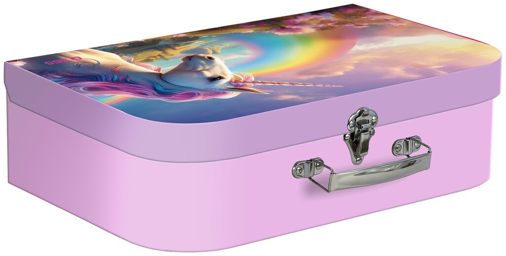 Vnější část je potažena potištěným papírem s atraktivními dětskými motivy, které jsou sladěné se školními aktovkami a batohy. Dětský kufřík tak skvěle doplní školní výbavu vašeho dítěte.