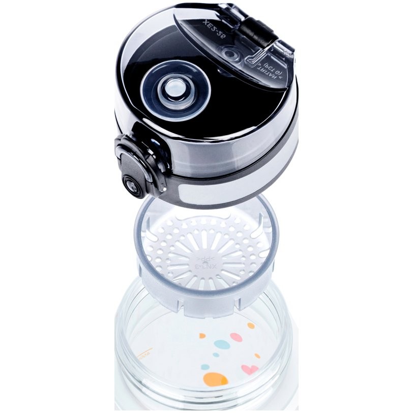 Uzamykatelné víčko nepropustí ani kapku nápoje a zaručuje jednoduché a intuitivní používání. Součástí tritanové láhve je i sítko, díky kterému můžete láhev použít i na limonády s ovocem nebo čaj (materiál je vhodný i pro horké nápoje). K láhvi je připevněné také poutko pro pohodlné nošení v ruce.