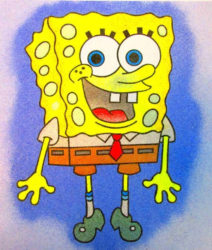 Jedna šablona o rozměru 21 x 24 cm s motivem legračního Spongboba.