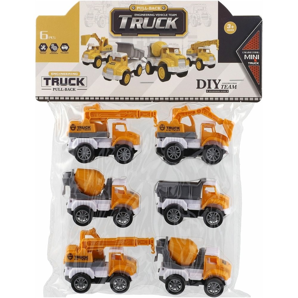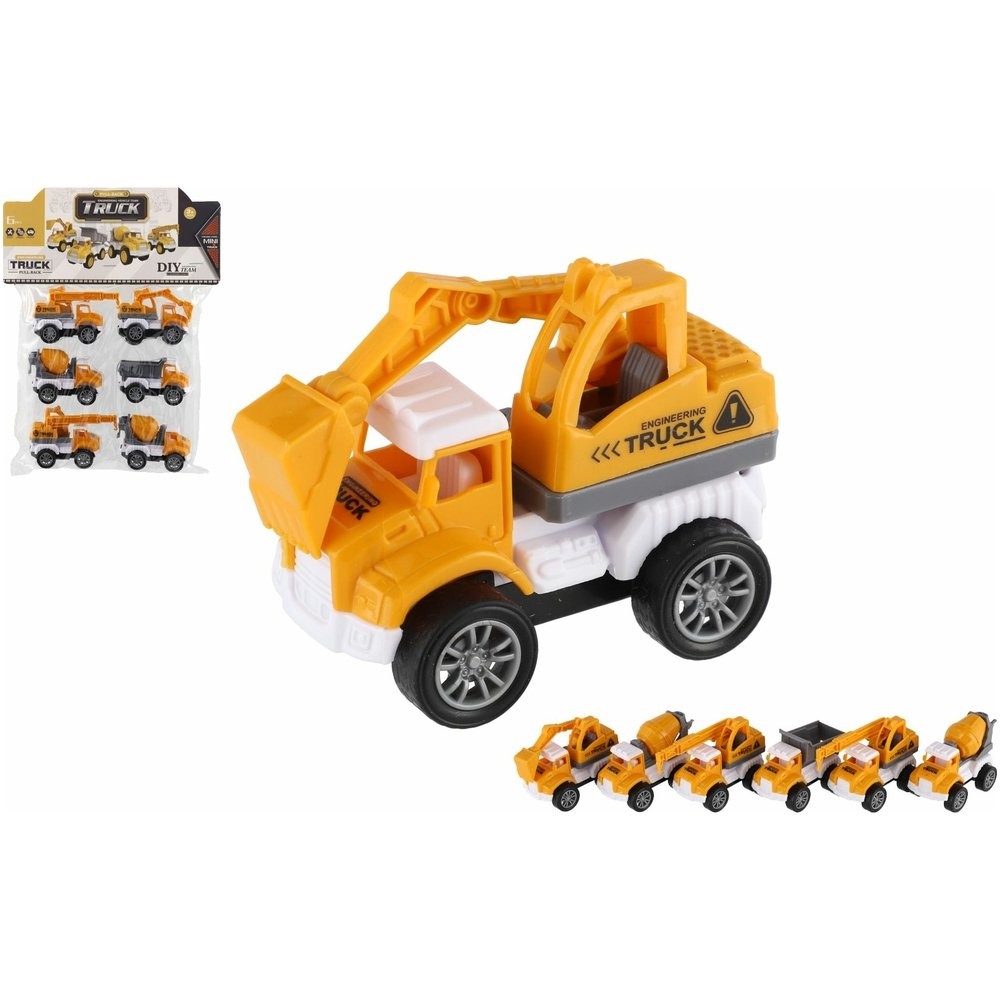 Stavební auto potěší každého malého stavitele. Autíčka mají praktický pohon na zpětné natažení – stačí natáhnout dozadu a pustit, a vozidlo se samo rozjede vpřed. Ideální pro hru doma, na pískovišti i na cestách.