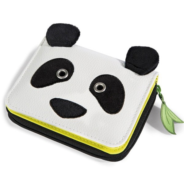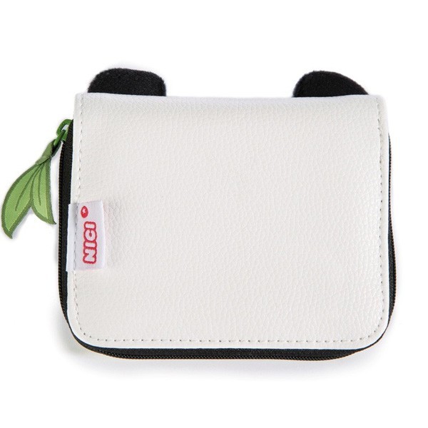 Roztomilá peněženka s koženkovým povrchem s uzavíráním na druk. Úsměv na tváři vám vykouzlí obličej pandy v podobě aplikace z jemného černého plyše. Uvnitř najdete 4 přihrádky na karty nebo doklady a jednu přihrádku s průhlednou fólií. Hlavní kapsa na zip je vhodná na drobné mince, boční kapsa na bankovky.