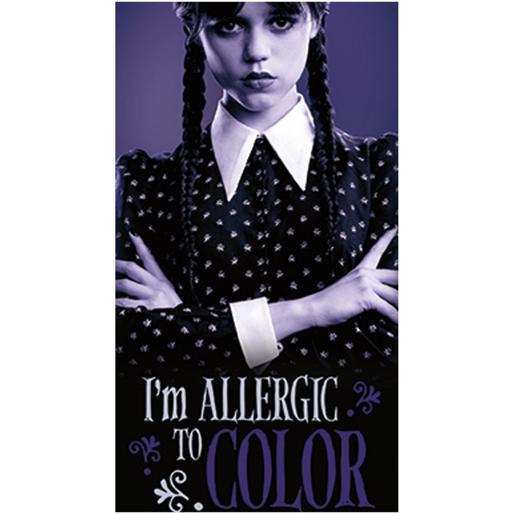 Dětská plážová osuška Wednesday s vysoce kvalitním potiskem vhodná do koupelny i na pláž. Potisk je z jedné strany, druhá strana je bílá.