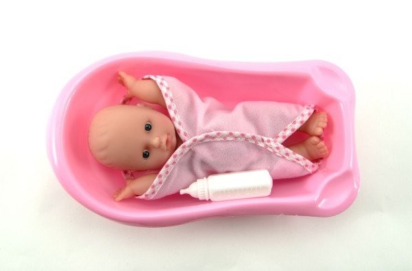 Panenka/miminko Agusia pevné tělo 17cm s vaničkou 22cm 2 barvy