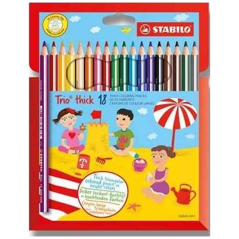 Silné pastelky Stabilo Trio jsou ideální pro malé umělce, kteří rádi kreslí. Pastelky mají trojhranný tvar, který dětem usnadňuje jejich držení a pomáhá naučit správně používat psací potřeby. Tuha je z kvalitního pigmentu. Balení obsahuje 18 pastelek v papírovém obalu.