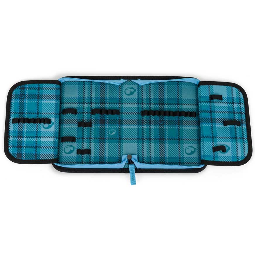 Stylový školní penál LUMI 26 C zpříjemní každý školní den. Uvnitř jsou dvě klopy s kapsami a s gumovými úchyty na psací potřeby. Na dvou otevíravých klopách je 35 pružných gumových úchytů na pastelky, pera, fixy, gumu, kružítko a další pomůcky. Pružná očka jsou poctivě přišitá a vyrobená z kvalitní gumy – nevytrhávají se ani nedeformují. Na horní straně je průhledná kapsy na rozvrh a na výukové kartičky. Pouzdro se zavírá kvalitním zipem s praktickým kovovým taháčkem a látkovým poutkem.
